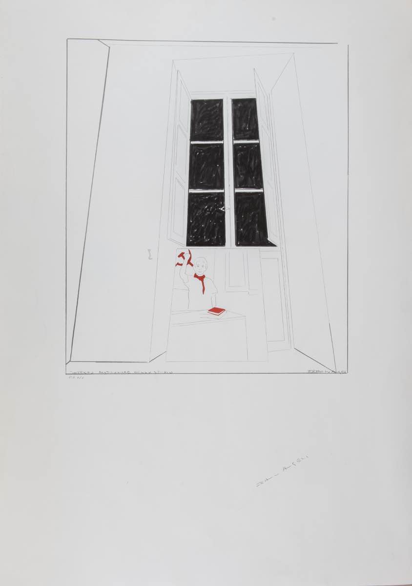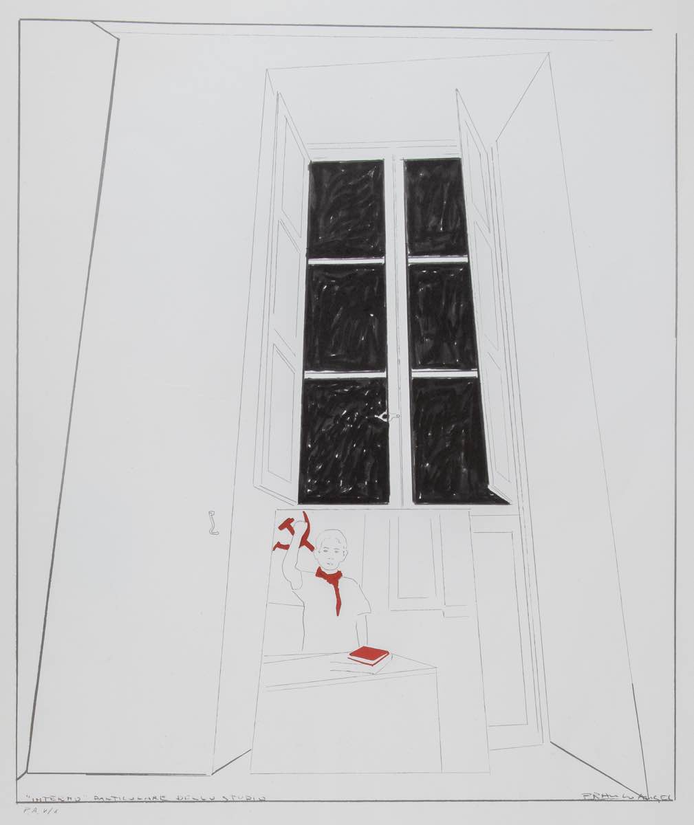 Franco Angeli (Roma 1935 - 1988), “Interno - Particolare dello studio”.