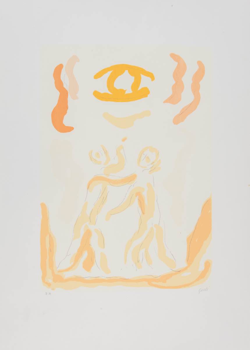 Litografia a colori su carta, firmata in basso a destra Guidi, esemplare in basso a sinistra PA, Lastra H cm 70x50
