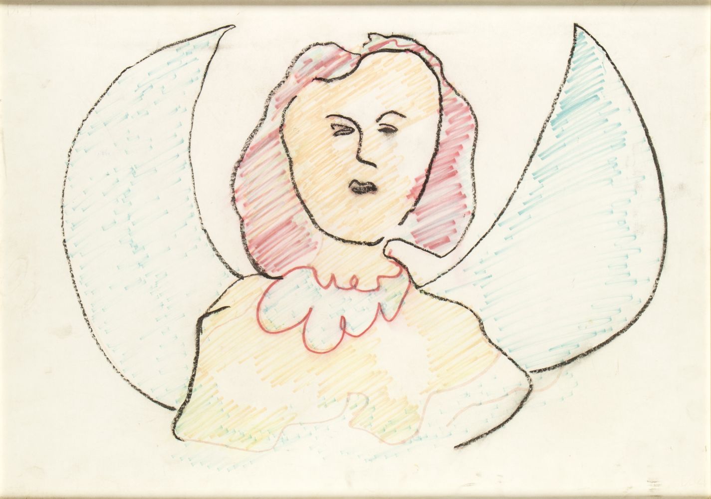 Pastelli e pennarelli su carta applicata su tela, 50 x 70 cm