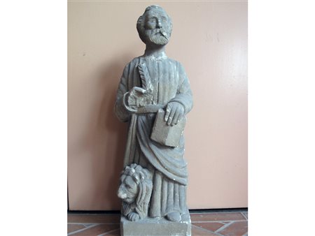 Scultura XVI secolo San Marco Pietra Alto 61 cm Base 17x19 cm