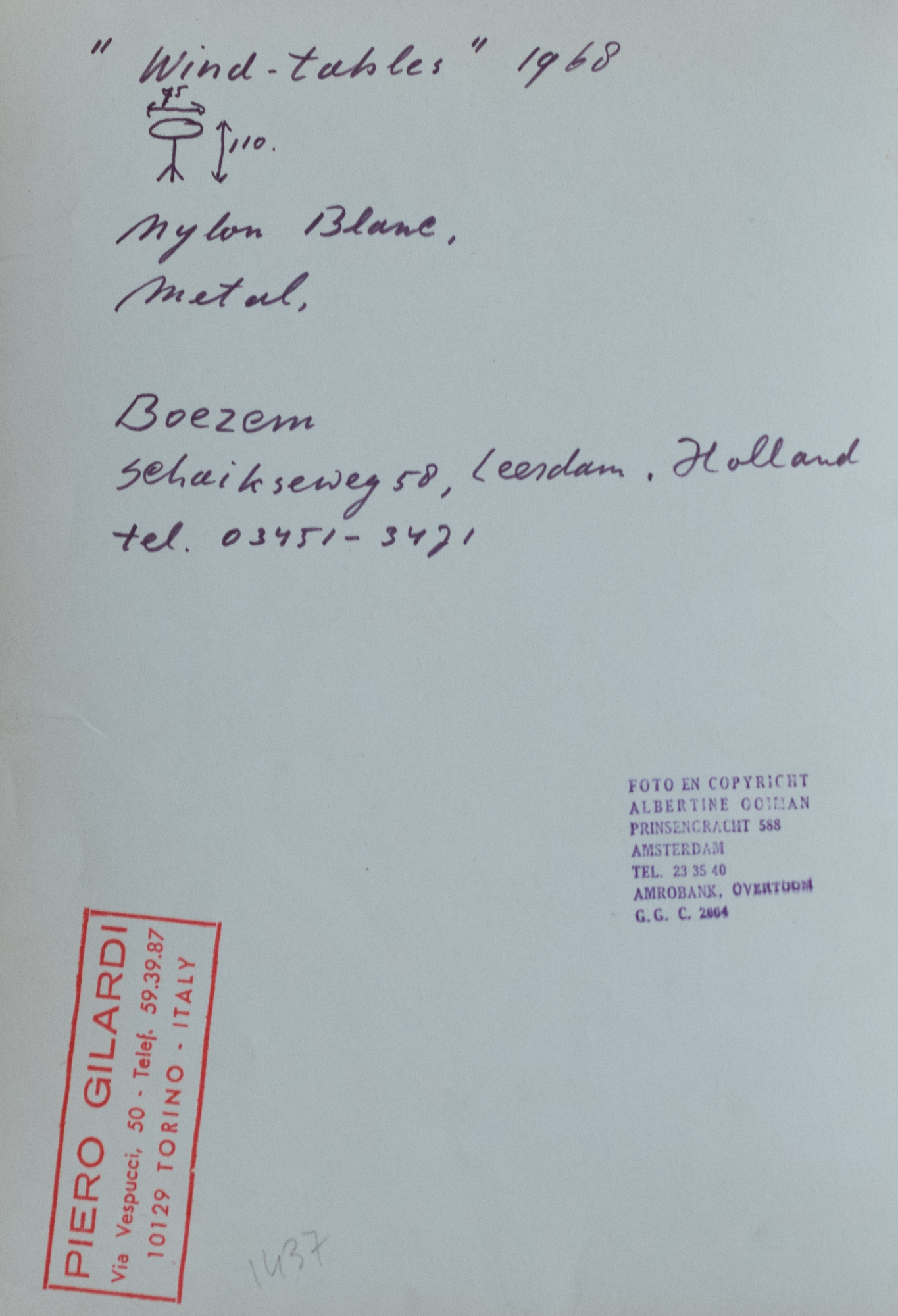 PIERO GILARDI Wind Tables, 1968