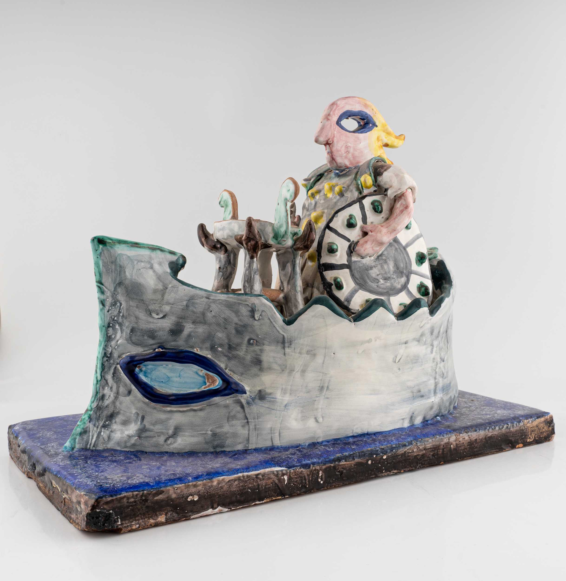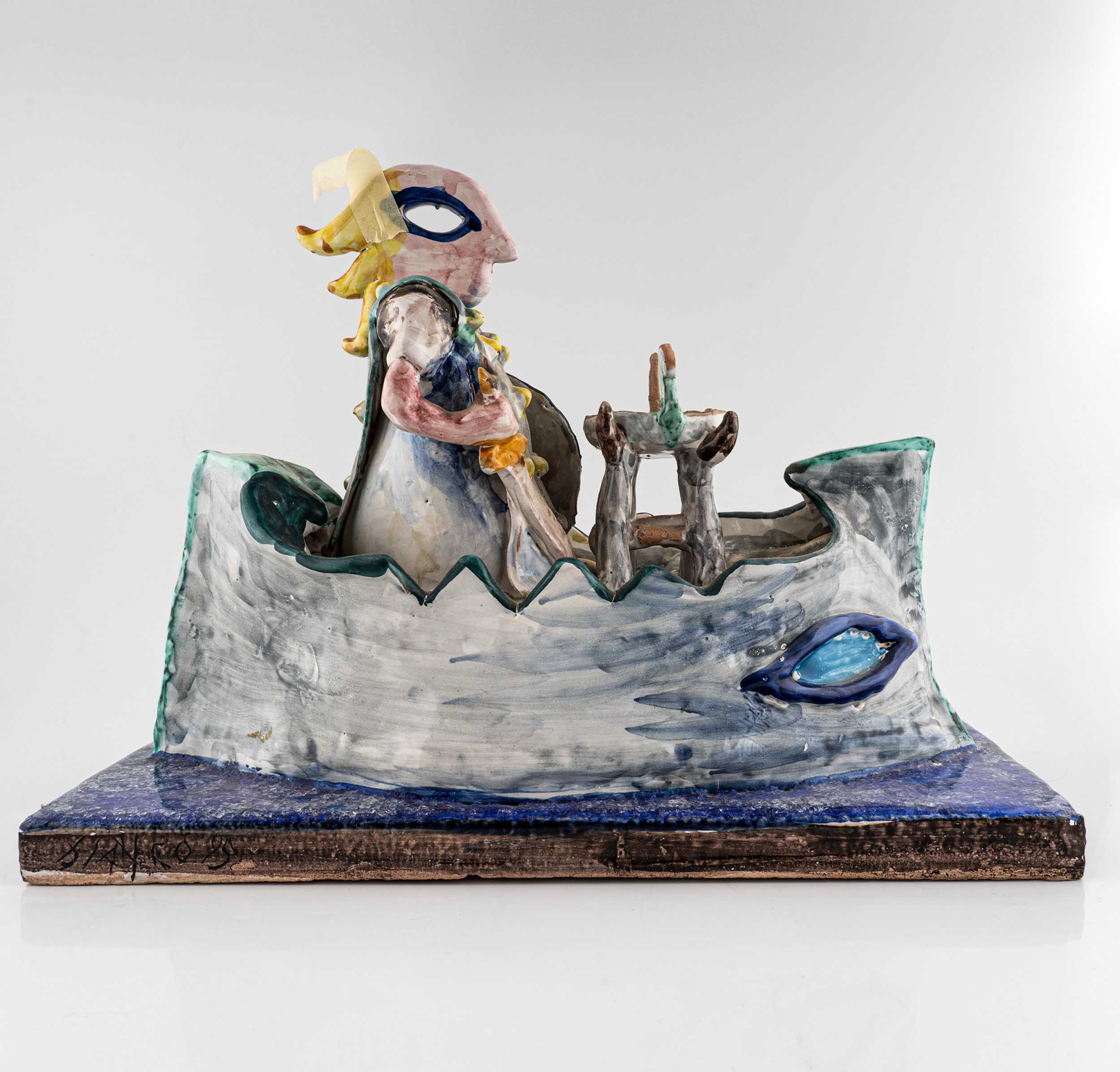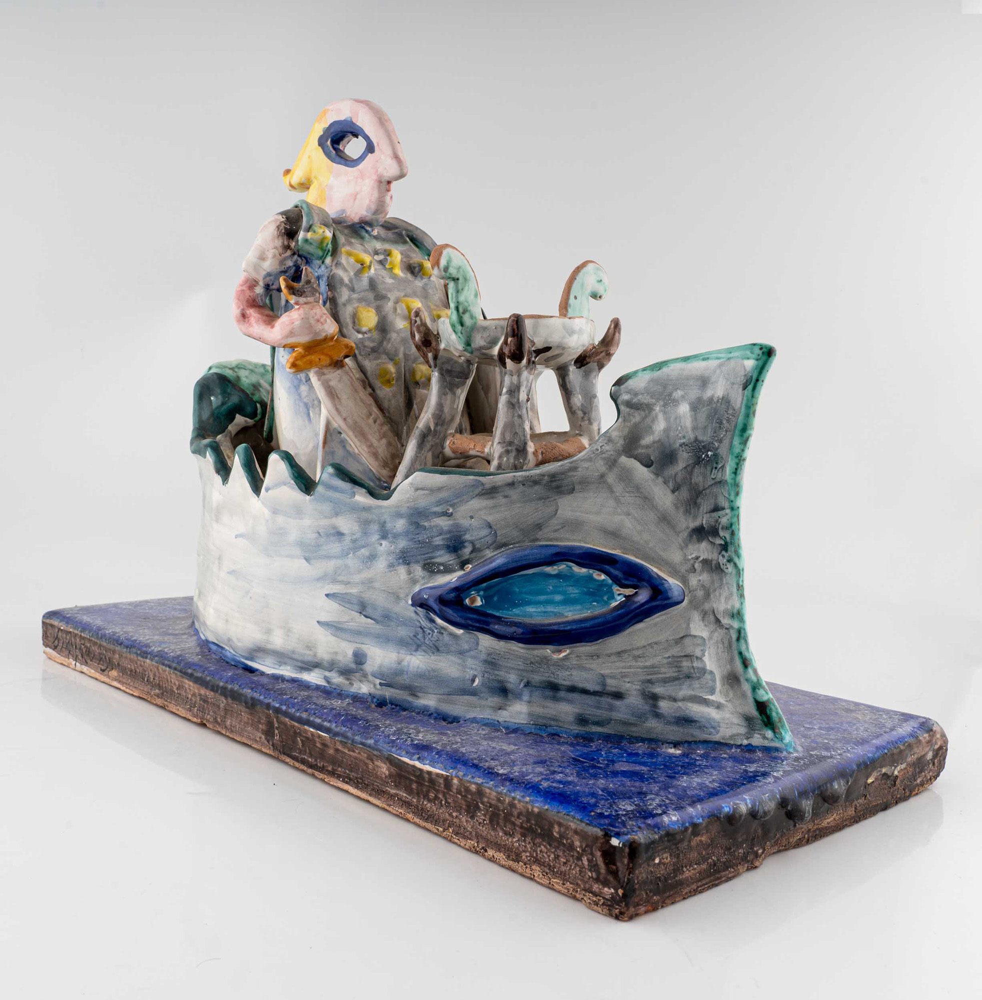 Enzo Bianco, Scultura con barca in terracotta invetriata