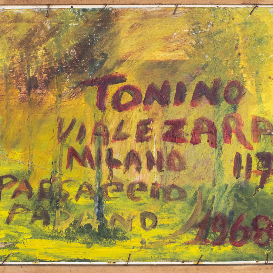 firmato in basso a destra Tonino; iscrizione dipinta sul retro 'Tonino viale Zara Milano 117, paesaggio padano 1968'