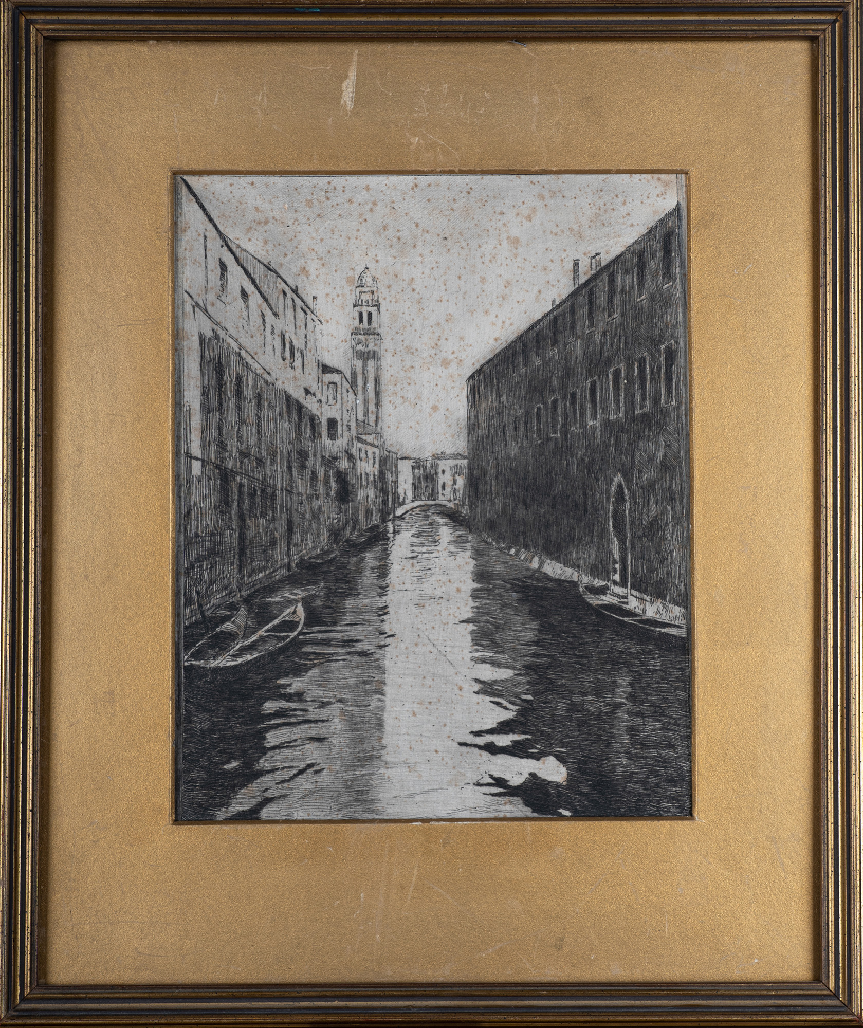 Incisione raffigurante un canale di Venezia, XX secolo.