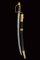 Bella sciabola da ufficiale epoca rivoluzionaria, datazione: fine del XVIII Sec. provenienza: Francia, Larga lama curva a un filo e controfilo con ampio sguscio e sottile tallone. Fornimento in bronzo dorato con elso e ramo di guardia perlinato, bellissimo pomo con elmo all'eroica finemente cesellato. Impugnatura in legno rivestito di trecciola metallica. Fodero in cuoio con fornimenti lisci in ottone dorato. Due anelli di sospensione. Rara. lunghezza 91.5 cm.