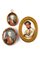 Lotto di tre miniature, datazione: XIX Secolo provenienza: Europa, Una raffigura un militare, probabilmente francese del XVIII secolo; di forma ovale e sotto vetro, con cornice decorata da perline (mancanze), e con il retro dotato di un altro vetro che racchiude una ciocca di capelli. Un'altra più piccola, che sembra raffigurare la stessa persona. L'ultima miniatura lavorata a spilla, sempre di forma ovale, in porcellana, con busto di un giovante militare austriaco, probabilmente di dinastia reale. La spilla dorata e incisa a motivi floreali. dimensioni 2.2 x 2.7 - 3 x 3.5 - 3.2 x 4.7 cm.