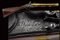 Trombone a pietra focaia da marina firmato Newton, datazione: 1800 circa provenienza: Inghilterra, Canna liscia a tre ordini, in ottone, prima ottagonale con decoro modanato e cornicetta alla base, marcatura 'Grantham' e punzoni del banco di Londra, poi con due segmenti tondi delimitati da anellature. Al termine del tratto ottagonale una breve fascia faccettata. La volata a strombatura circolare, con gioia di bocca e anellatura alla base. Codolo in ferro con intaccature, resti di incisioni e traguardo a sella. Batteria firmata 'Newton', con cane dotato di sicura esterna. La meccanica ben funzionante. Cassa intera liscia in legno con intaglio a conchiglia attorno al codolo della canna. Fornimenti in ottone. Calciolo con incisione a rocaille, il ponticello lavorato a ghianda al codolo anteriore. Contropiastra traforata. Bacchetta in ferro. Newton è documentato a Grantham nel Lincolnshire fra il 1781 e il 1815. Vedi 'Der neue Stoeckel', vol. 2 pag. 867. lunghezza 78,8 cm.