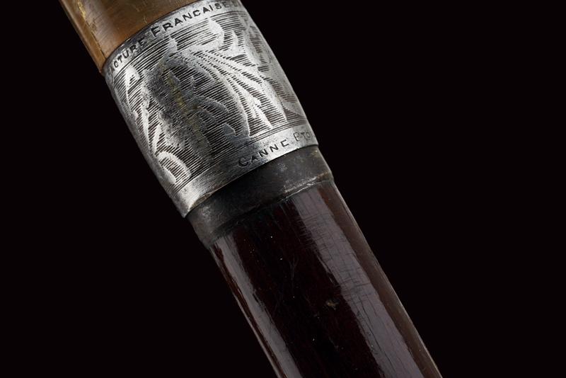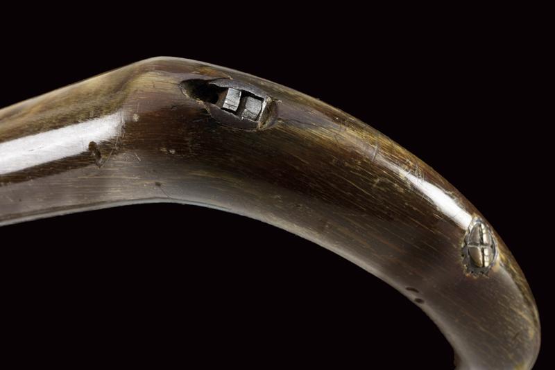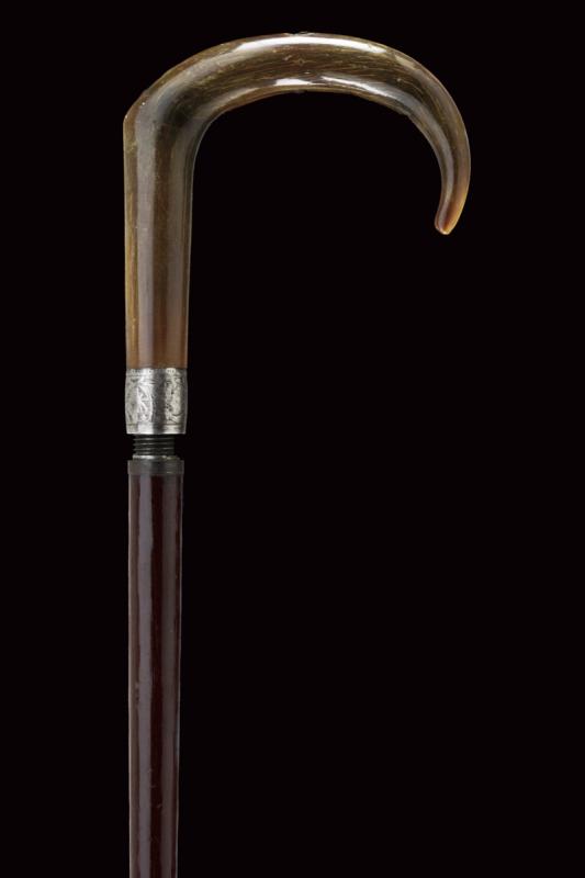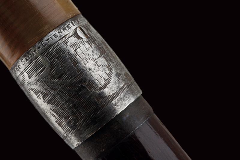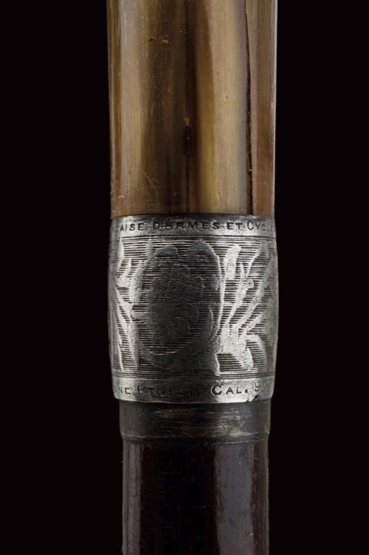 Bastone fucile a percussione centrale, datazione: 1880 circa provenienza: Francia, Canna tonda in ferro, cal. 9 mm; impugnatura curva in corno, ghiera incisa marcata 'Cane Etoile 9/mm'. lunghezza 89 cm.