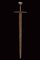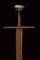 Rara spada da cavaliere, datazione: terzo quarto del XIII Sec. provenienza: Europa, Lama dritta a due fili leggermente convergenti verso la punta, che è leggermente arrotondata. Su entrambi i lati lo sguscio corre per circa tre quarti della lunghezza. Al forte, sempre su entrambe le facce, resti di fregio leggermente rilevato a croce greca con bracci biforcuti, su un lato recante tracce di agemine color ottone. La superficie della lama con varie sfogliature e incrostazioni. L'elso in ferro a traversino, a forma di parallelepipedo, con bracci che si assottigliano leggermente verso l'esterno. Il codolo piatto e leggermente rastremato verso l'alto. Bel pomo a noce di Brasile in ferro, di forma ben pronunciata. Lunghezza elso 22,5cm. Lunghezza lama 84,2 cm. Peso: 1280 grammi. Raro e affascinante esemplare di un'epoca ormai leggendaria. lunghezza 100,5 cm.
