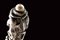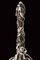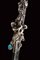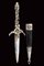 Elegante pugnale romantico in argento, datazione: XIX Secolo provenienza: Europa, Lama dritta a due fili di sezione lenticolare, con qualche intaccatura. Elso e impugnatura in un unico pezzo. In argento finemente lavorato in rilievo. I bracci dell'elso sono costituiti dalle code, lavorate a tuttotondo di due sirene avvinghiate all'impugnatura, a formare un gruppo scultoreo, i cui corpi sinuosi sono lavorati con grazia e plasticità. Il corpo centrale dell'impugnatura è lavorato a effigiare il tronco di una vite, cui viticci e grappoli in altorilievo si dipanano per tutta la lunghezza del fusto. A formare il pomo quattro ramarri accovacciati le cui code si intrecciano. Il bottoncino dorsale costituito da una perla; le estremità dei bracci dell'elso con un cabochon di pietra azzurra tipo turchese. Il fodero in legno rivestito di marocchino nero (piccolo taglio su una faccia). Puntale e cappa in argento entrambi incisi a racemi, il primo con grande incastonatura di pietra vitrea faccettata rossa e tre cabochon in turchese, la seconda con passante e tre pietre vitree color rosso. lunghezza 20,8 cm.