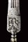 Bel pugnale da caccia, datazione: Inizio del XIX Secolo provenienza: Italia meridionale, Lama di forma triangolare a due fili con triplice scanalatura centrale, la base intagliata con uccello e leone in bassorilievo su fondo scuro, la cornice incisa a motivi floreali e geometrici. Impugnatura in corno con doghe e fornimenti in argento inciso. lunghezza 36 cm.