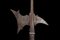 Alabarda, datazione: 1600 circa provenienza: Italia, Lunga cuspide di sezione a losanga; scure con taglio leggermente concavo, decorata a trafori e riccioli; becco incurvato verso l'asta e traforato al centro e munito di un punzone ben visibile. Lunghe bandelle piatte con rivetti in ottone a fiore (alcuni mancano). Fusto in legno. altezza 239 cm.