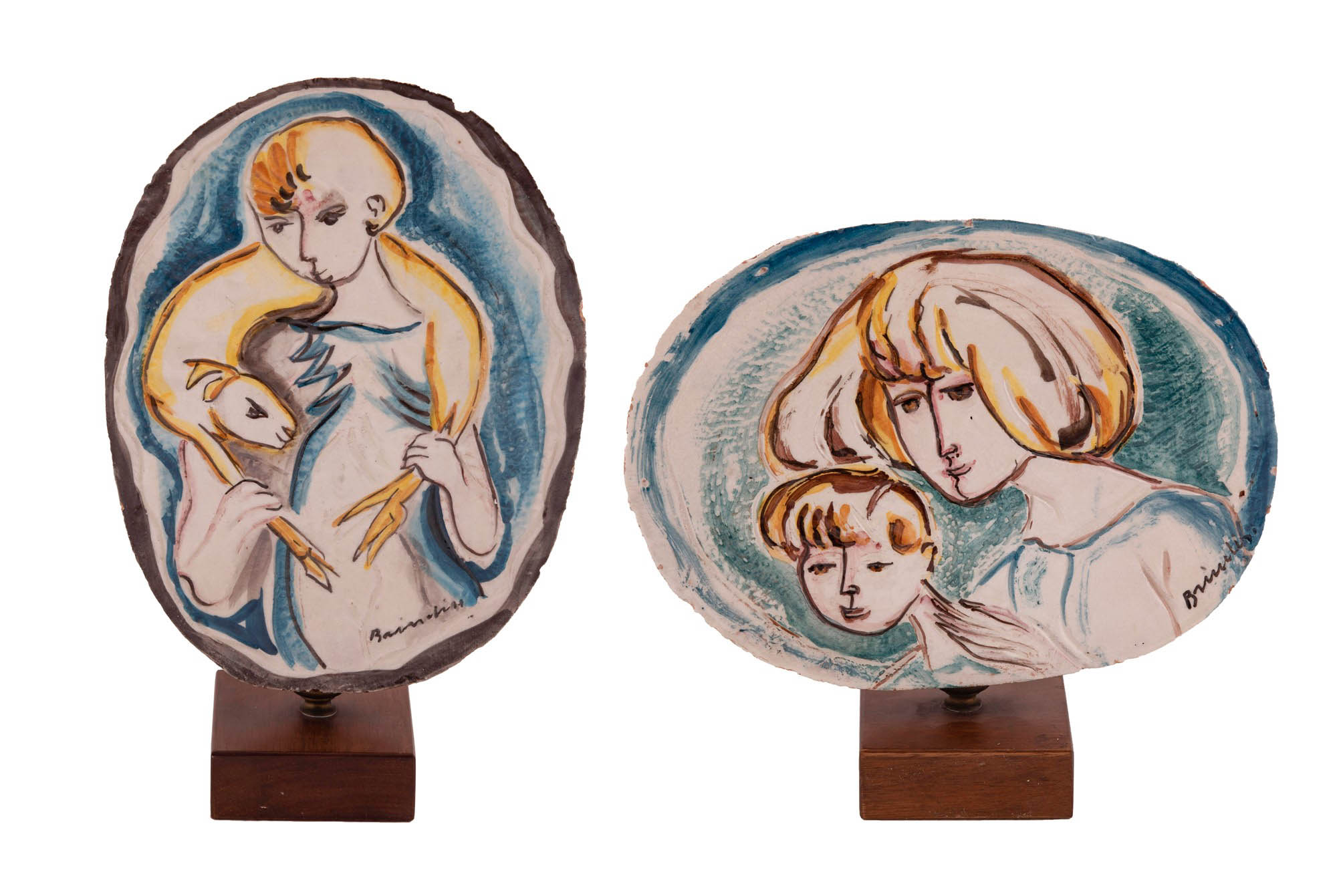 Brindisi Remo (Roma, 25/04/1918 - Lido di Spina, 25/07/1996) Due piastre in ceramica: a) donna con bambino b) pastore Ceramica dipinta a) cm 24x31 e cm 33x31; b) cm 31x24 e cm 39x24