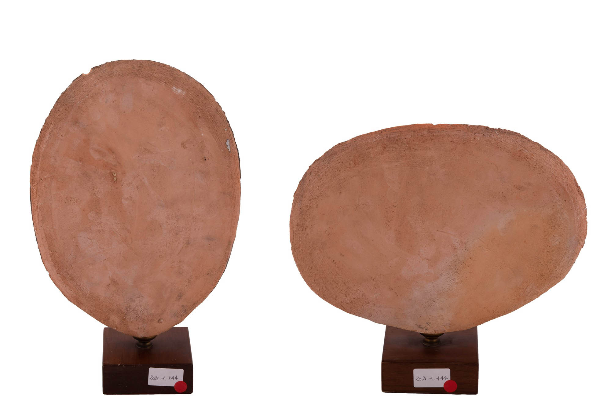 Due piastre in ceramica: a) donna con bambino b) pastore