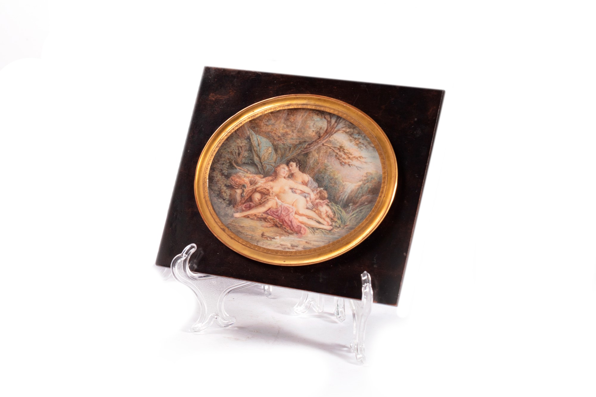 Scuola francese, secolo XIX - Miniatura raffigurante scena erotica