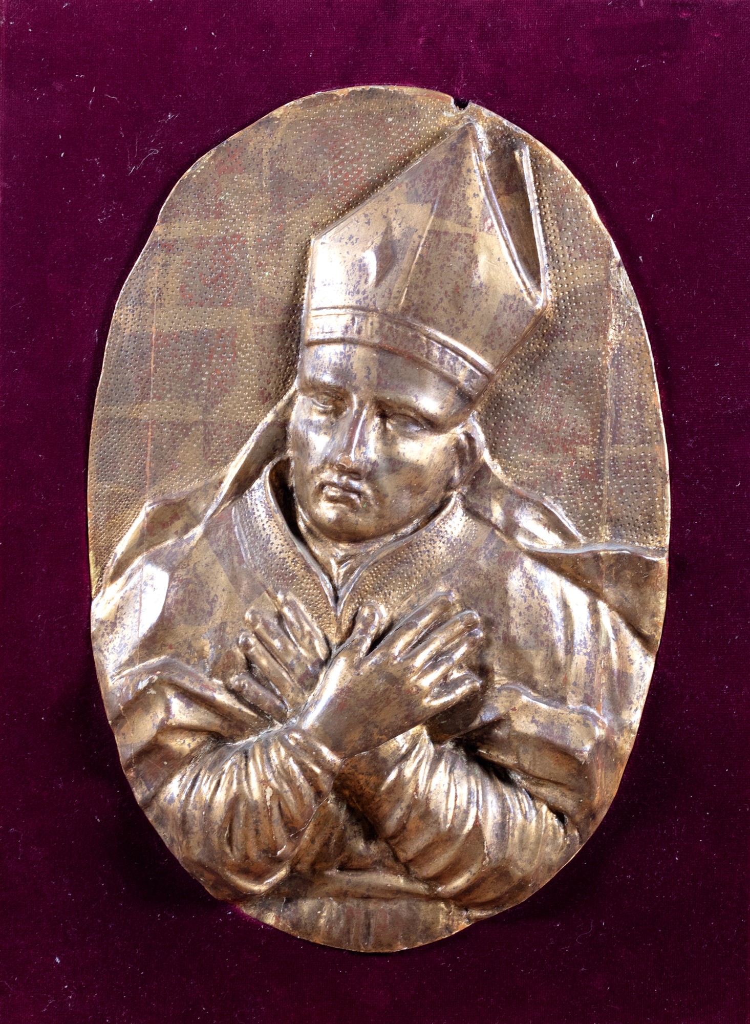Due altorilievi in legno dorato raffiguranti un Papa e un Cardinale, secoli XVIII - XIX