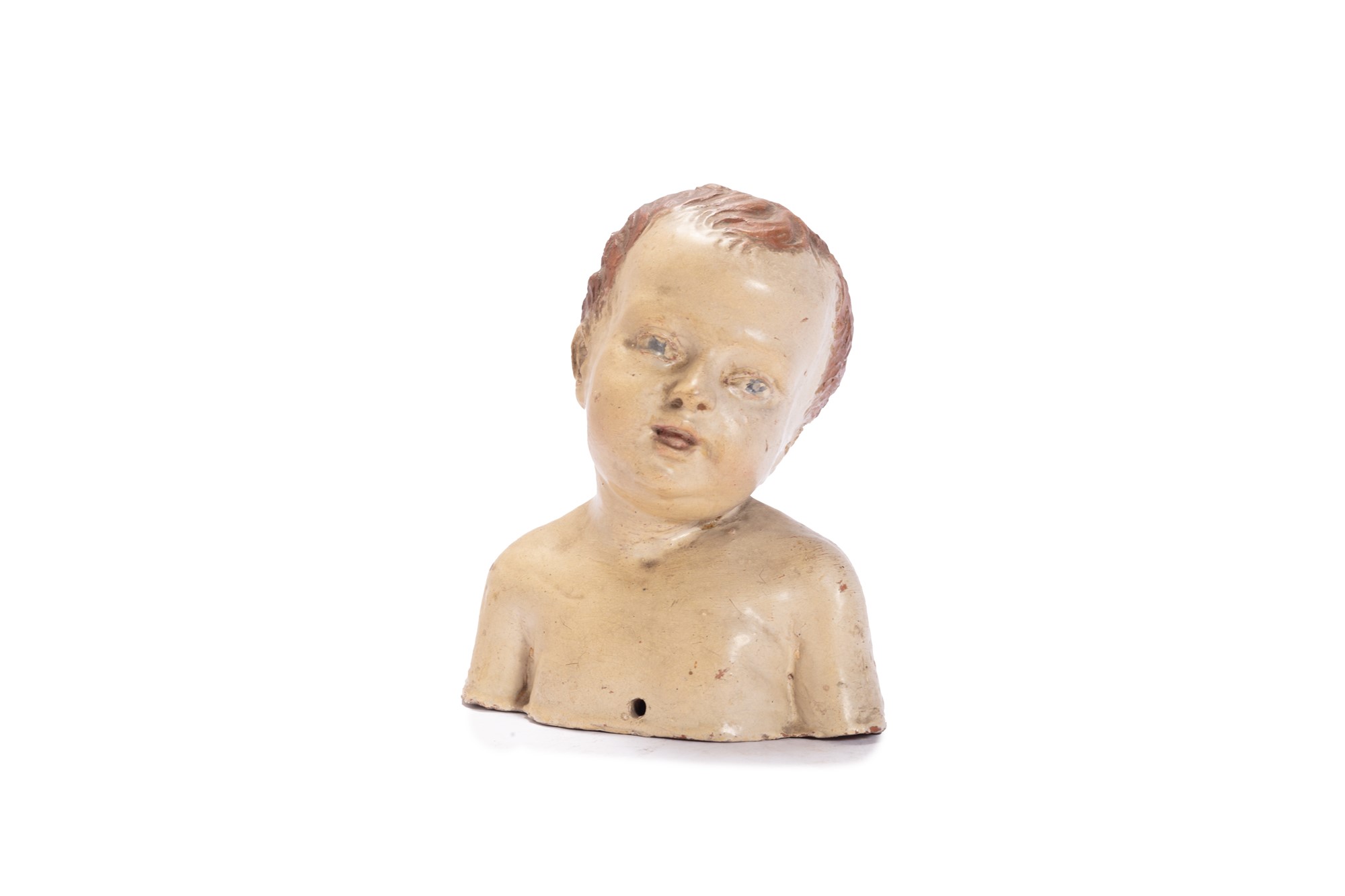 Scultura in terracotta policroma raffigurante busto di bimbo, secolo XIX