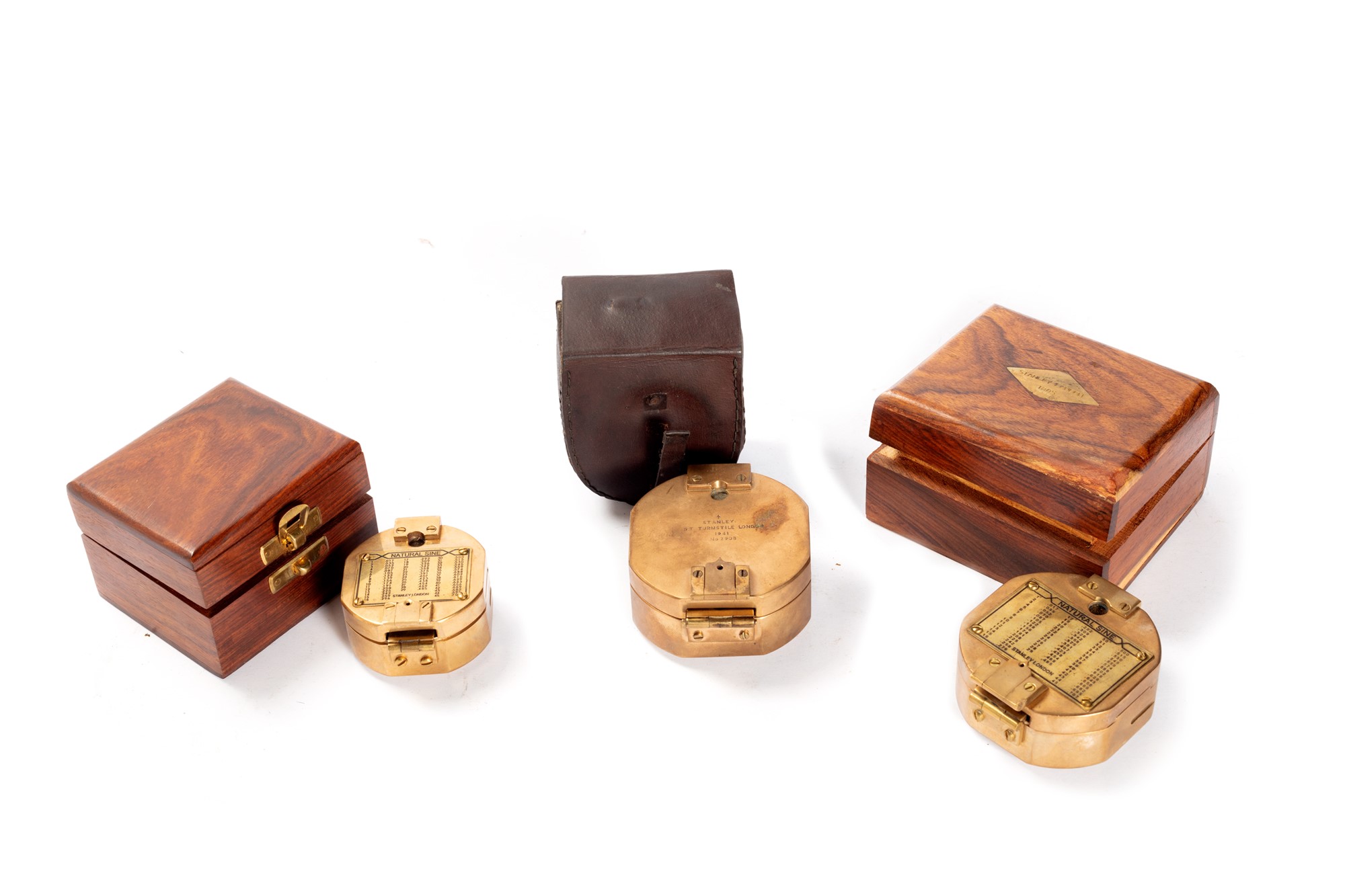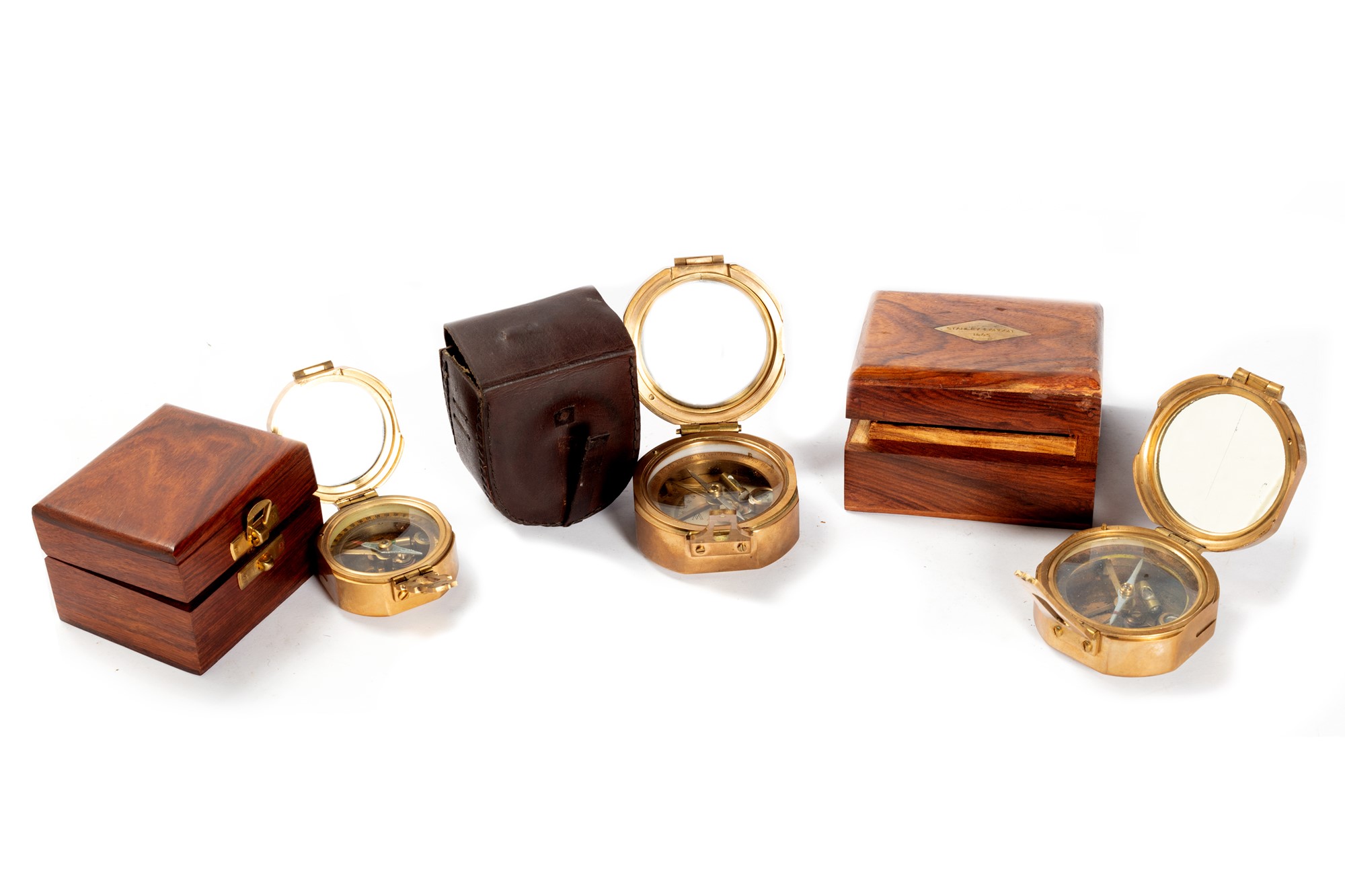 due entro scatole in legno; uno entro astuccio in cuoiodue entro scatole in legno; uno entro astuccio in cuoio