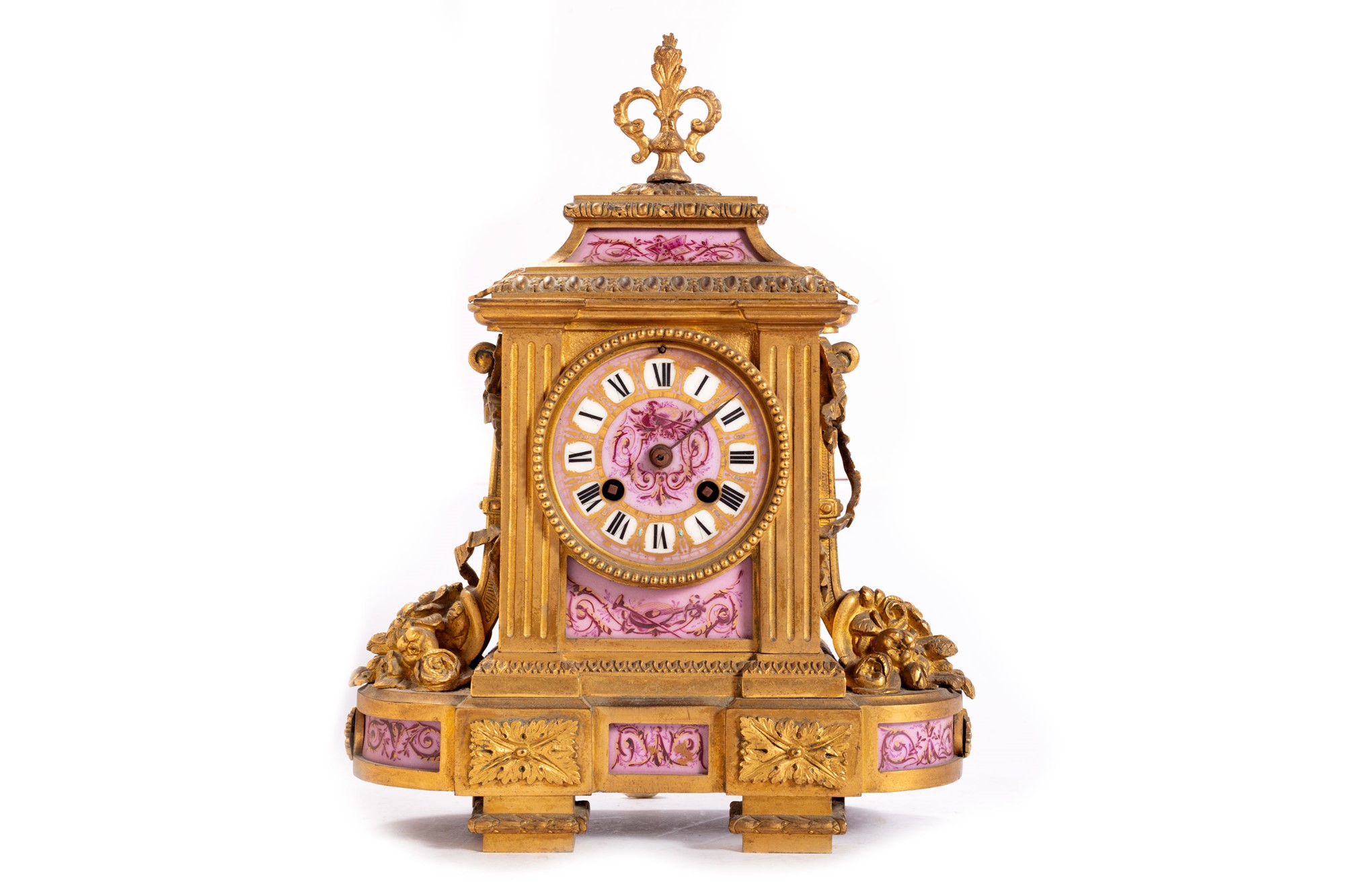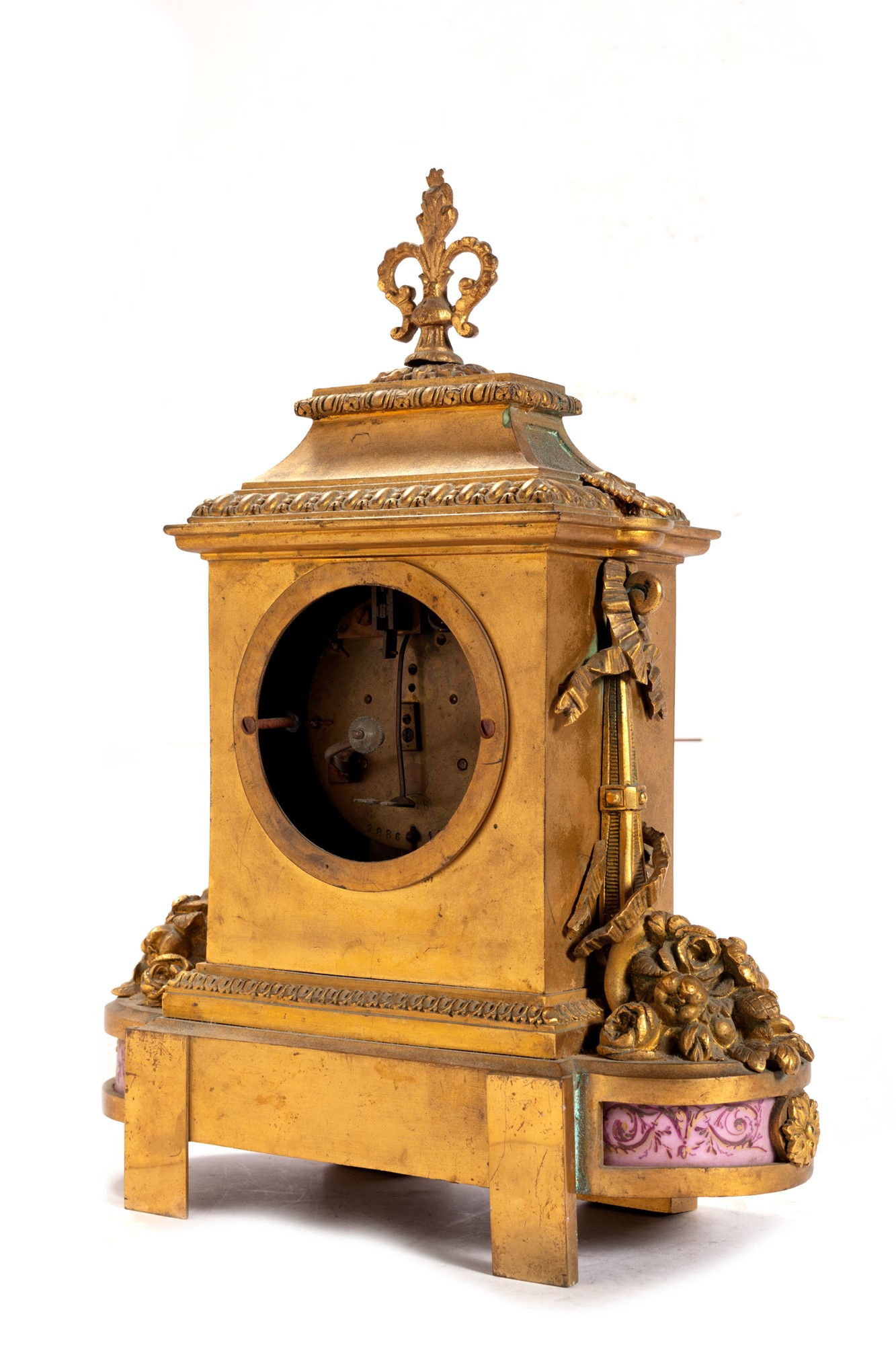 Pendola in bronzo dorato e porcellana policroma, secolo XIX