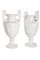 Coppia di grandi vasi in porcellana bianca con menadi danzanti e anse a forma di testa di cigno, fine secolo XIX