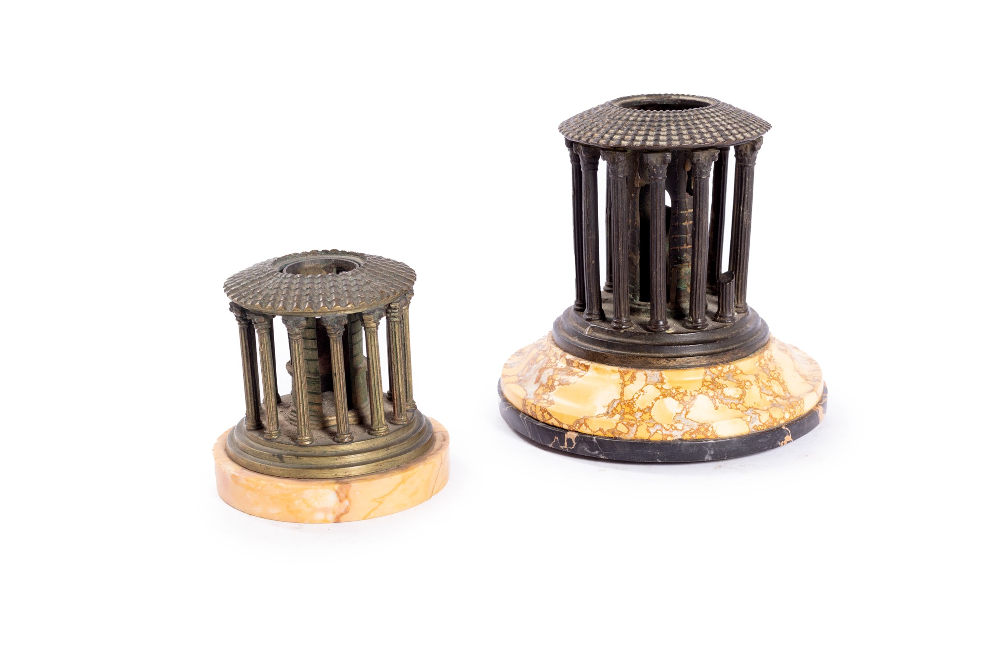 Lotto di due modellini Grand Tour del Tempio di Ercole vincitore in bronzo, secolo XIX