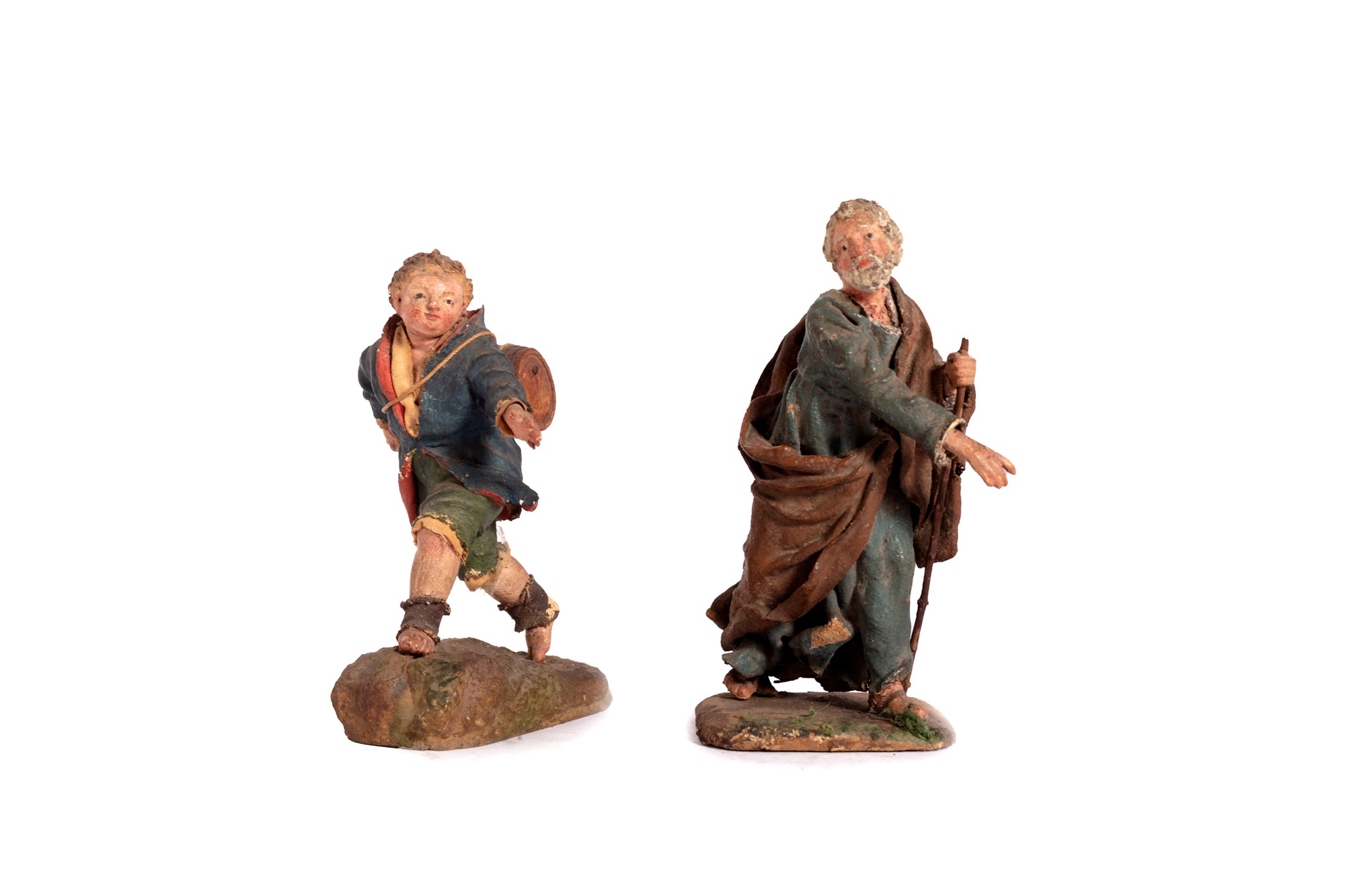 Lotto composto da due statuine policrome da presepe in legno e cartapesta, Sicilia secoli XVII - XVIII