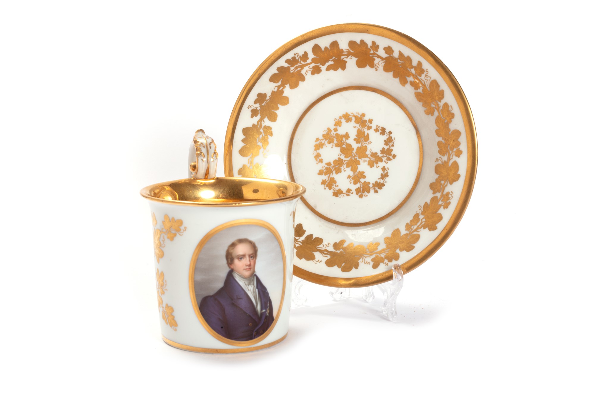 decorata in bianco e oro e dipinta con figura di gentiluomo a mezzo busto in ovaledecorata in bianco e oro e dipinta con figura di gentiluomo a mezzo busto in ovale