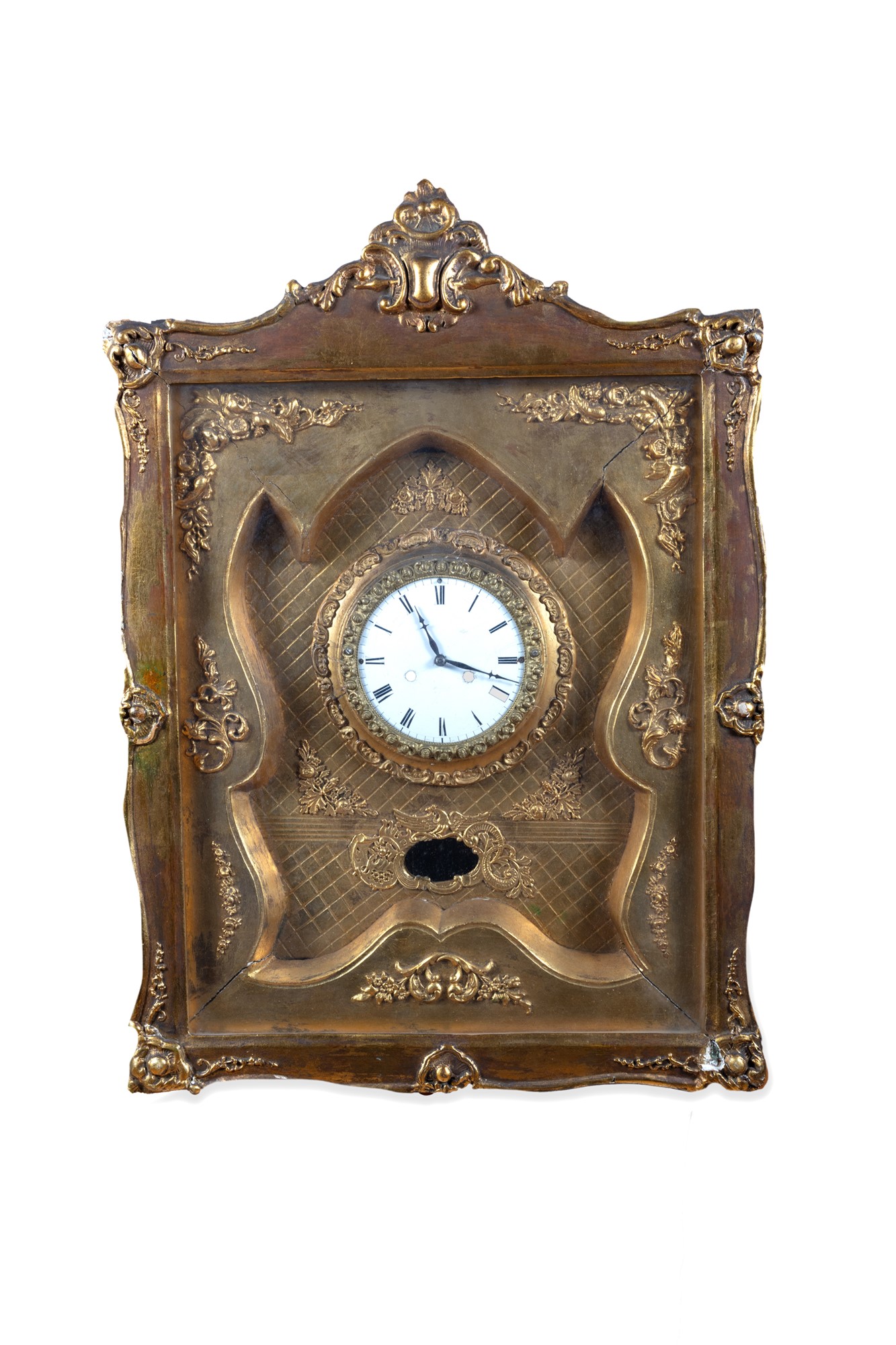 Orologio da muro in legno intagliato e dorato, Vienna secolo XIX
