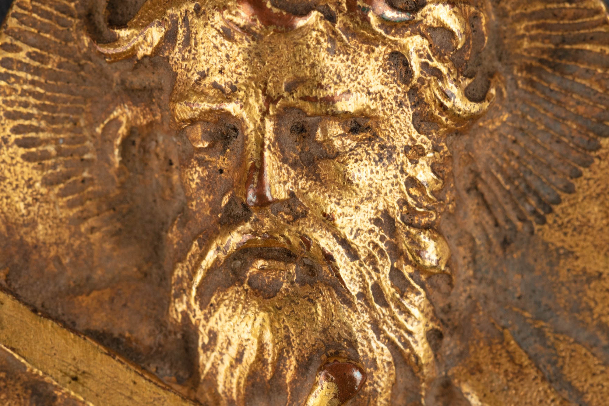 Lotto di quattro placche in lamina di rame sbalzato, cesellato e dorato, secoli XVI - XVII