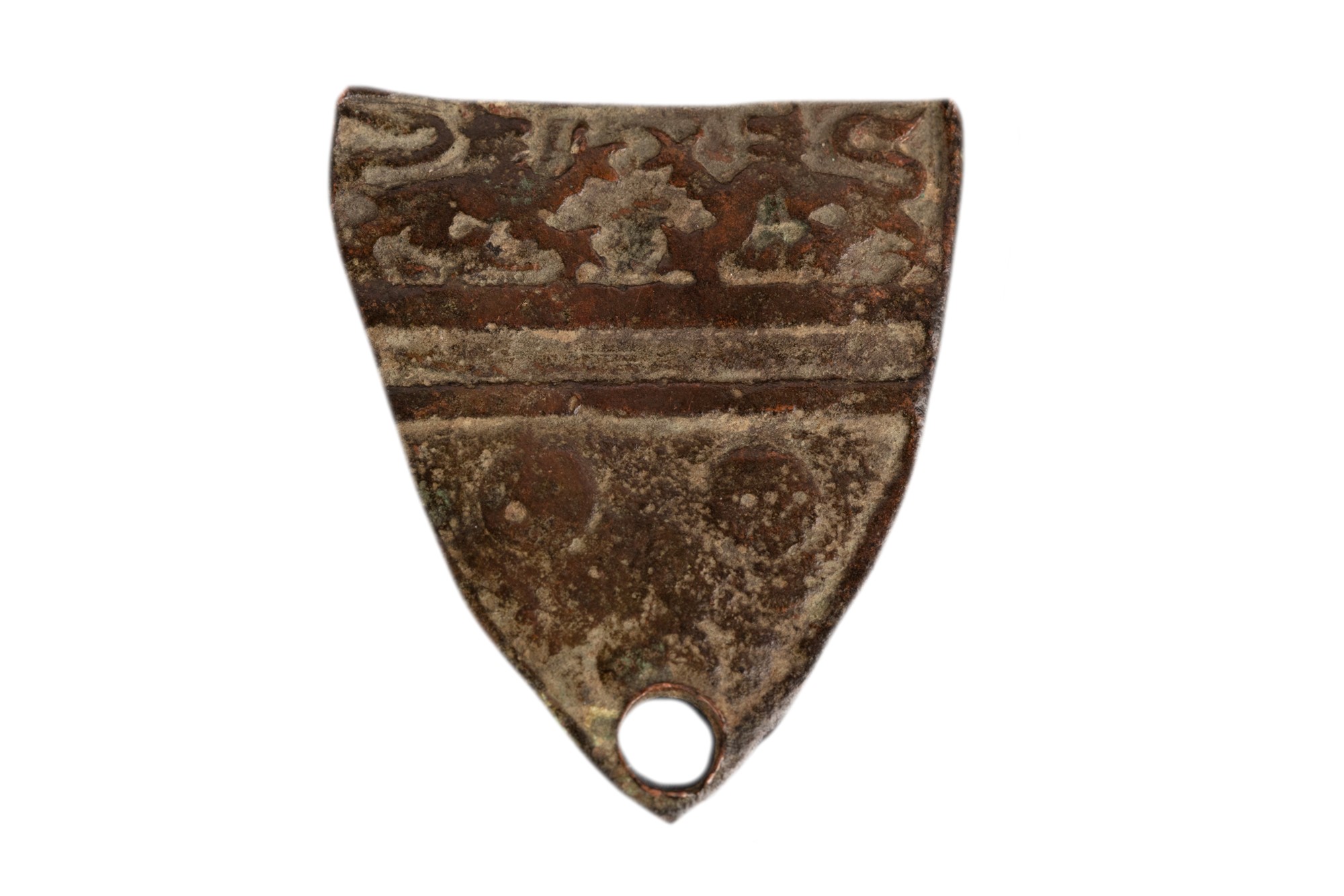 un aquila su globo; animale fantastico entro scudo; due elementi di mobile in bronzo dorato; un sigillo orientale; pendente a forma di scudo con stemma nobiliare; elemento decorativo ovale con animale rampante; stemma nobiliare con due leoni e tre palle; una medaglia con quadriga e Vittoria alata; placca ovale con agnello mistico sul recto e Madonna con Bambino e Santo al verso