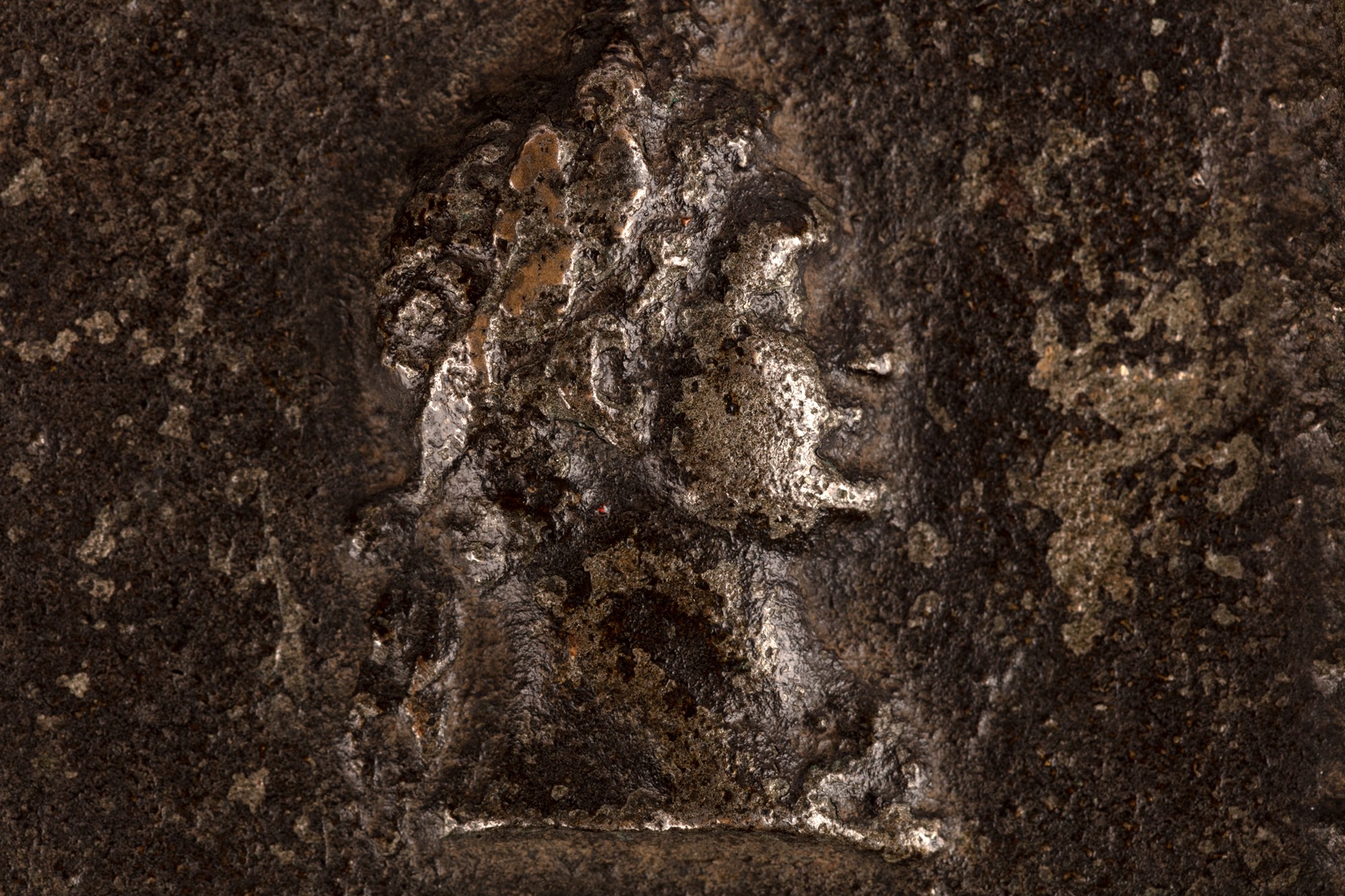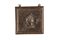 Antica placca quadrata in ferro con profilo di imperatore