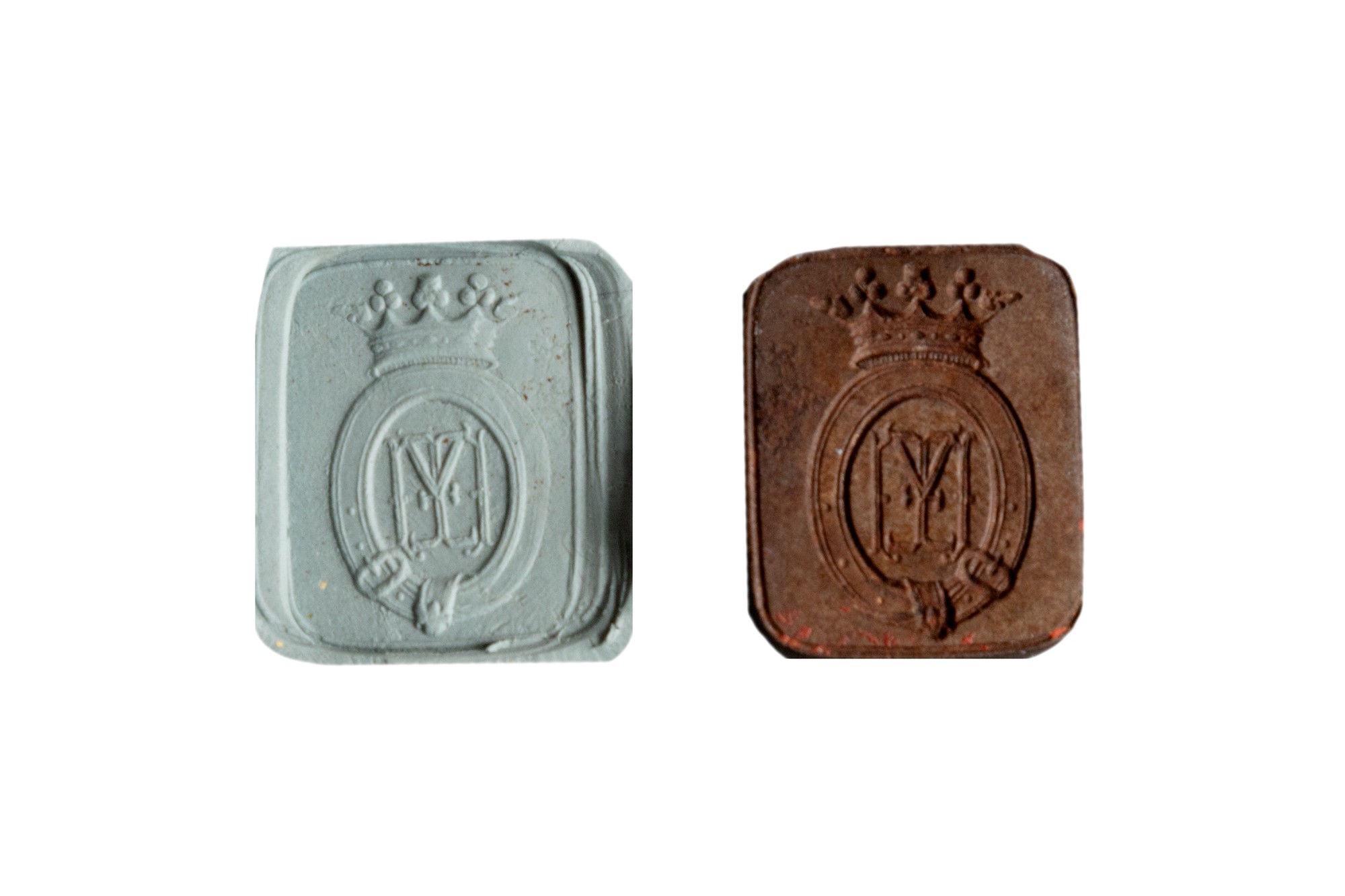 altezza totale cm 4,2 (il più grande) e cm 1,7 (il più piccolo); cm 4,3 x 3,2 (il sigillo più grande) e cm 1,5 x 1,7 (il sigillo più piccolo)