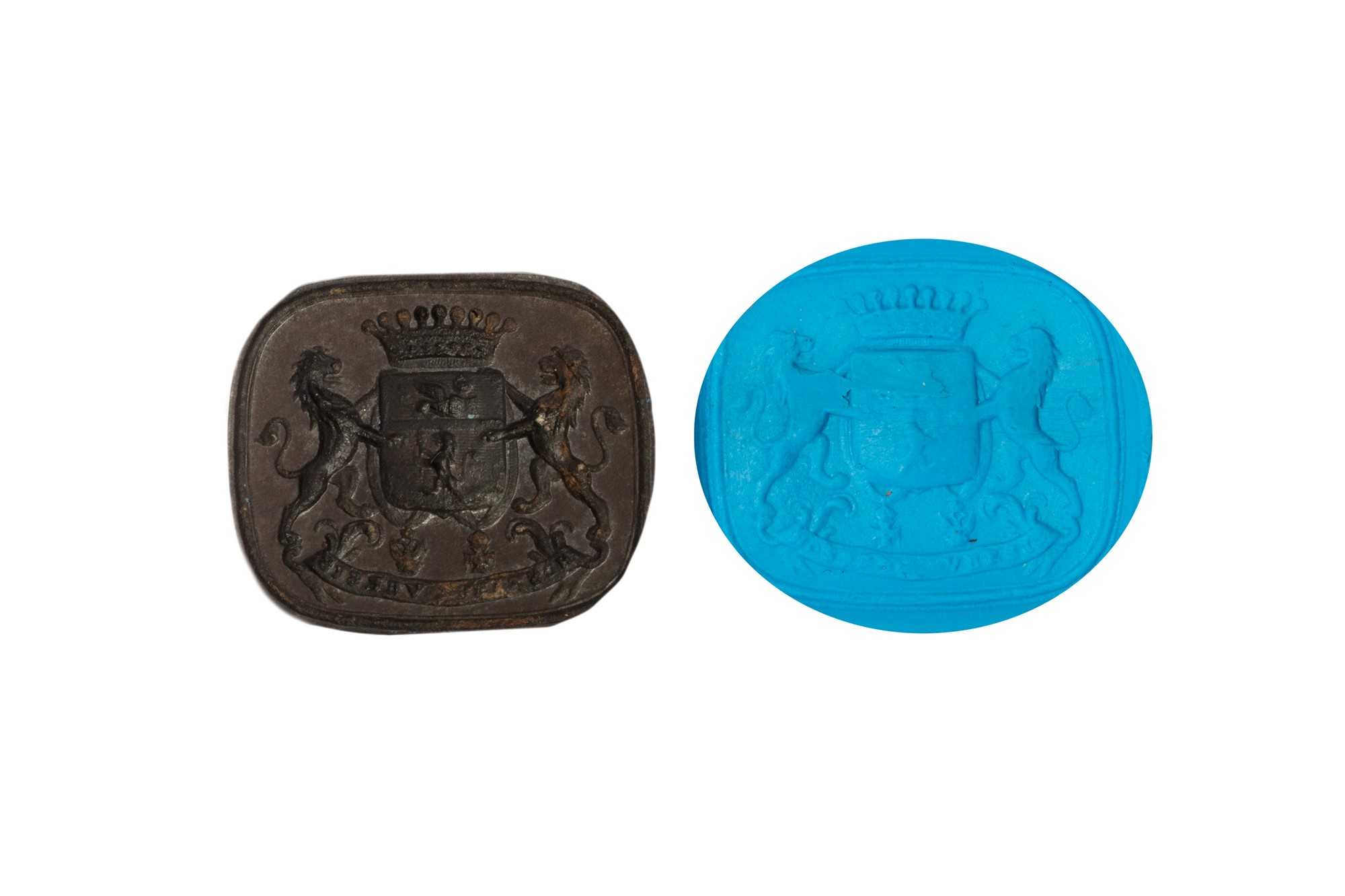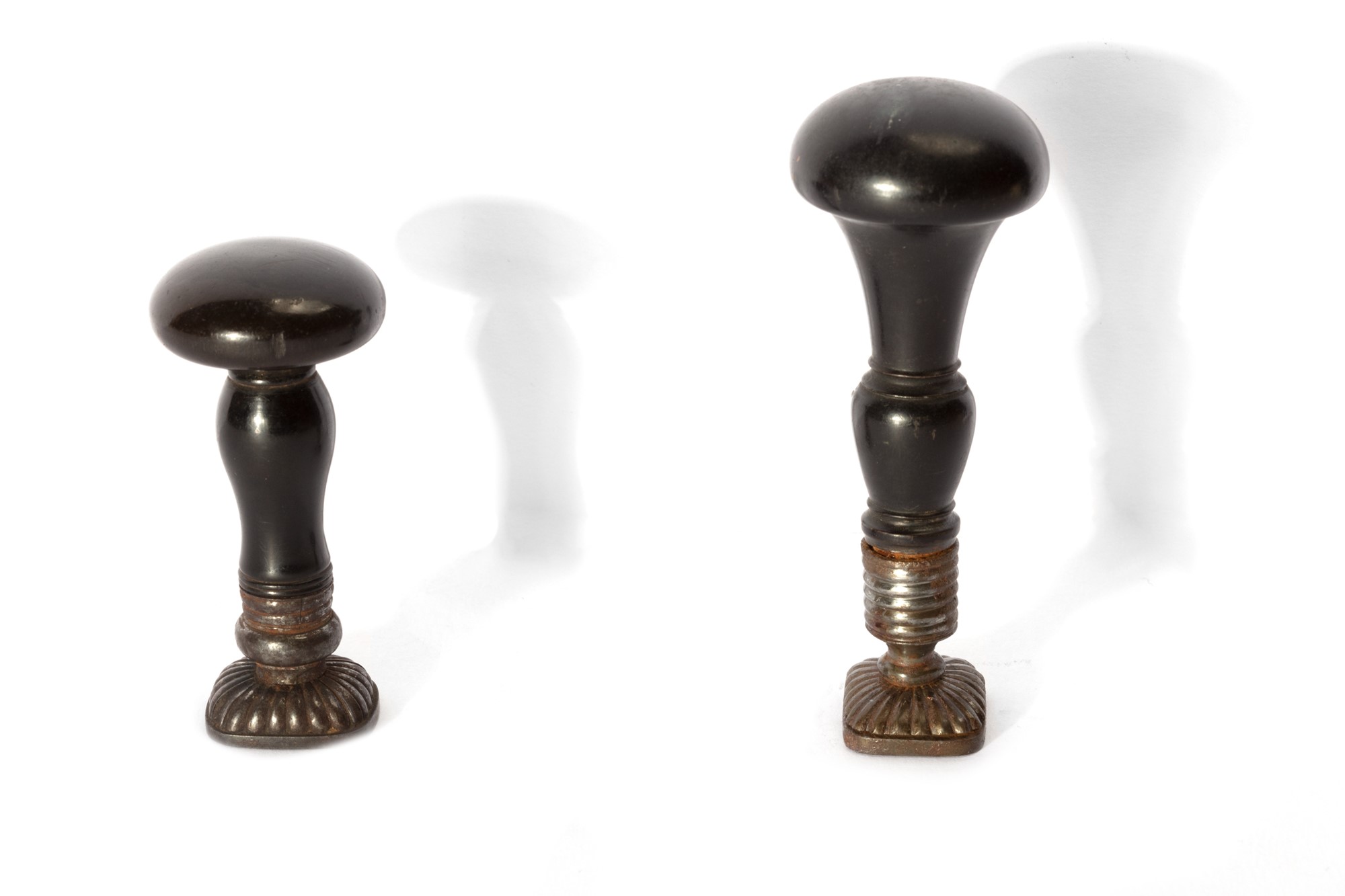 Lot 623 | Due sigilli in ferro con manico in legno ebanizzato nero, con stemmi nobiliari, secolo XVIII