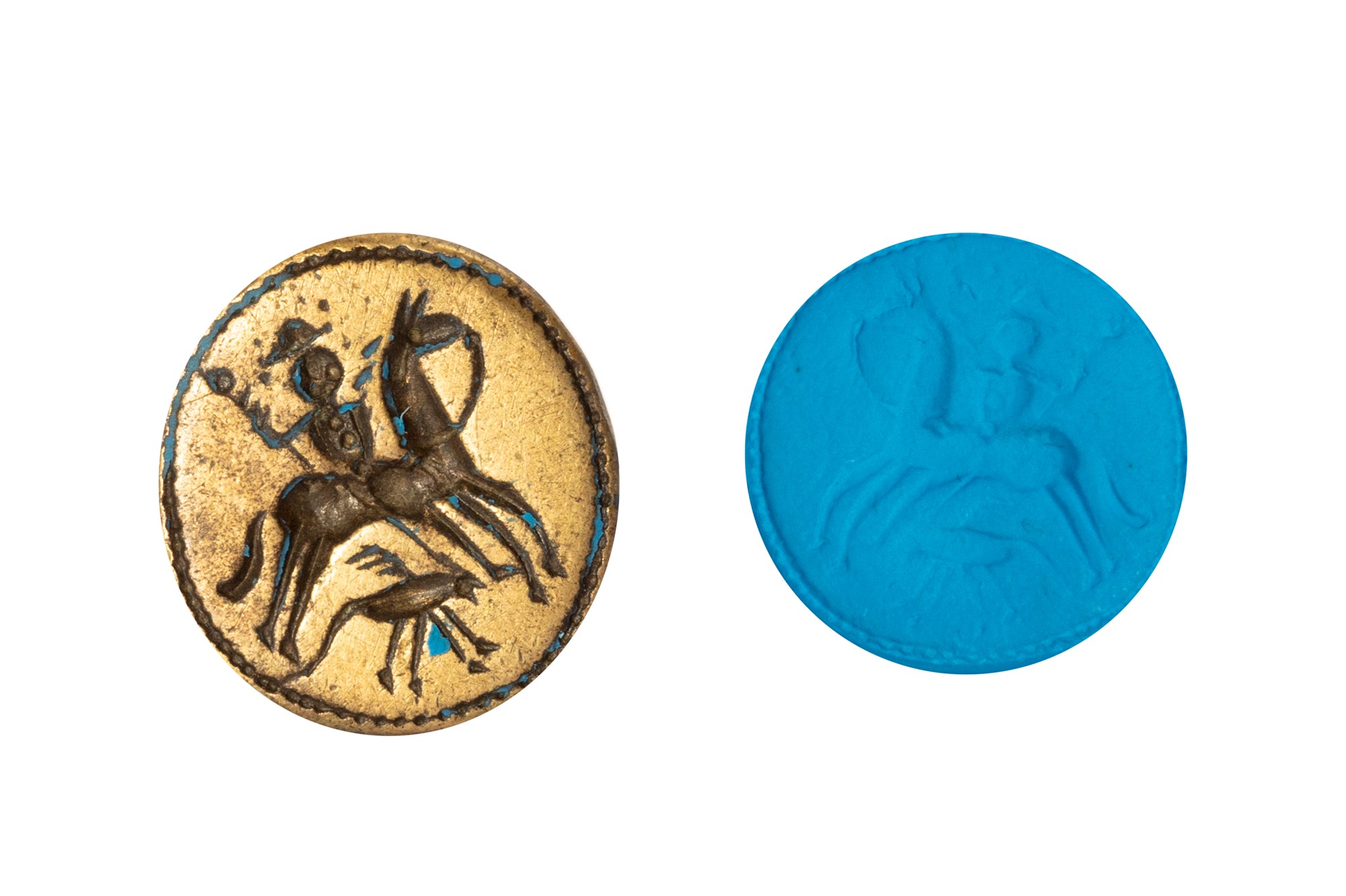 circonferenza anello cm 2,3; cm 1,8 x 1,9 (il sigillo); circonferenza anello cm 2,2; cm 2 x 1,9 (il sigillo)