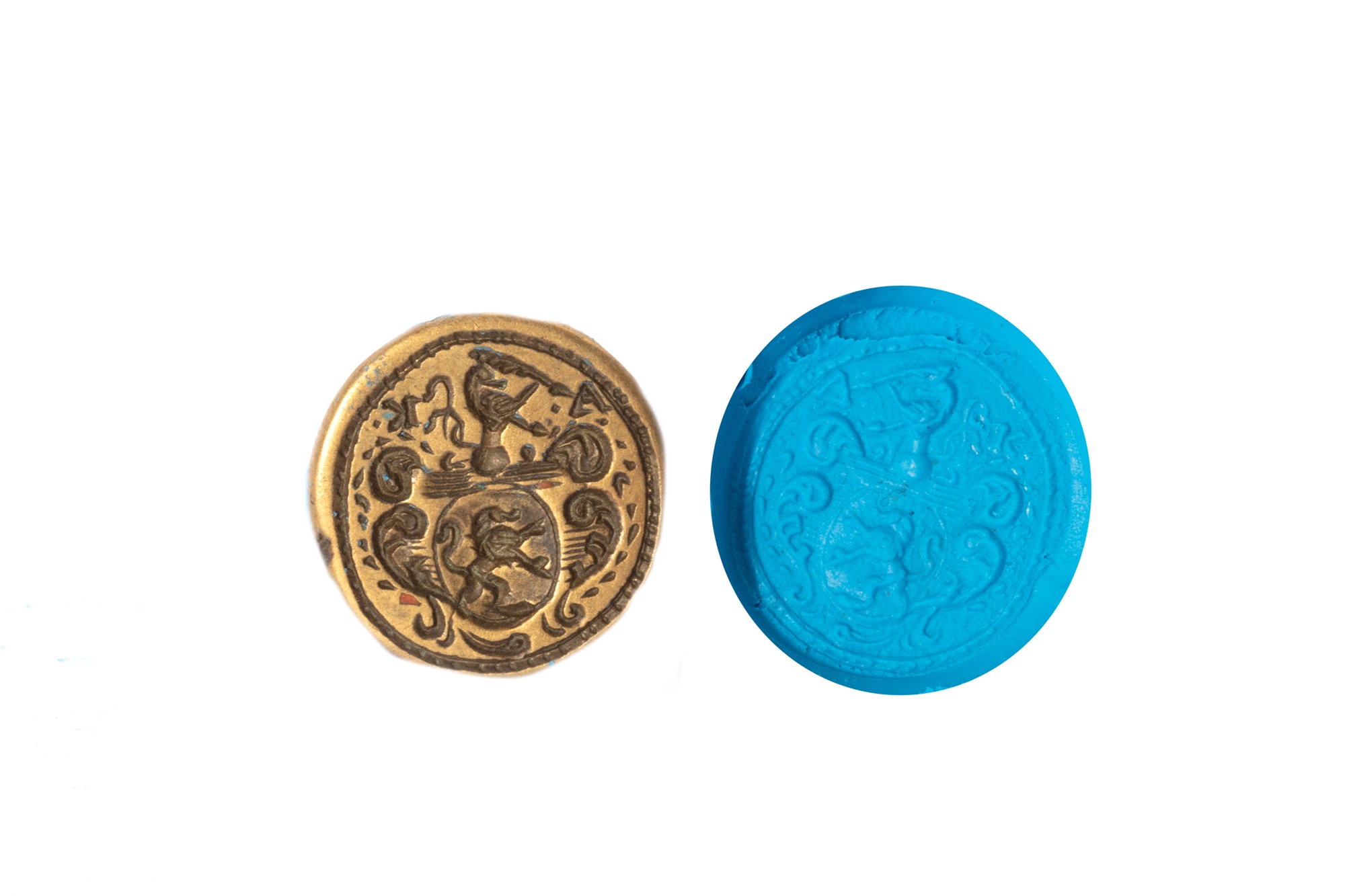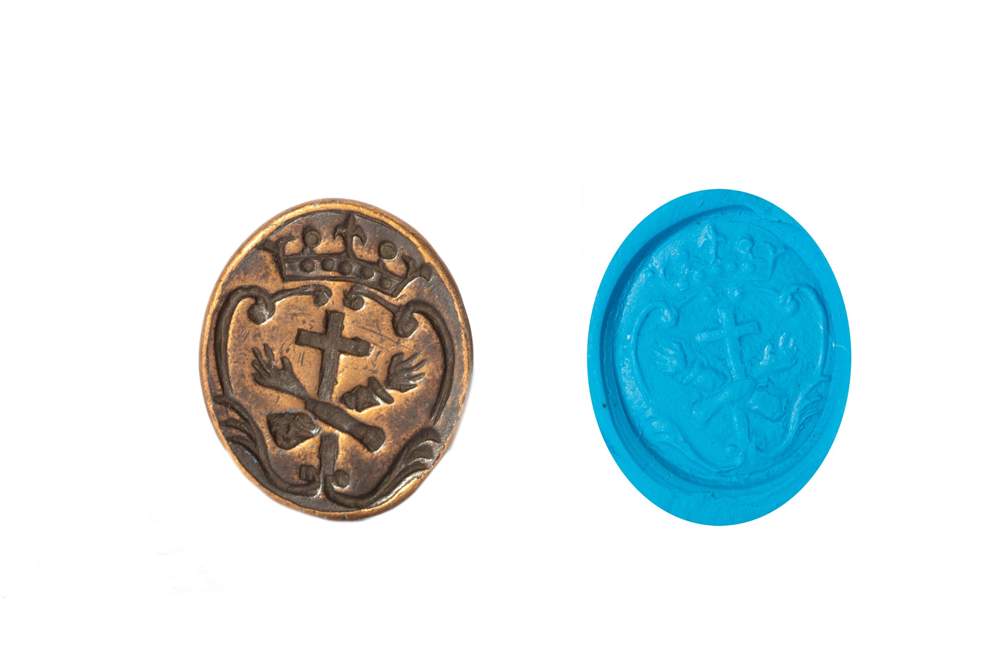 Lot 633 | Lotto composto da cinque sigilli di cui tre a pendente, in bronzo, con stemmi nobiliari, secolo XVIII