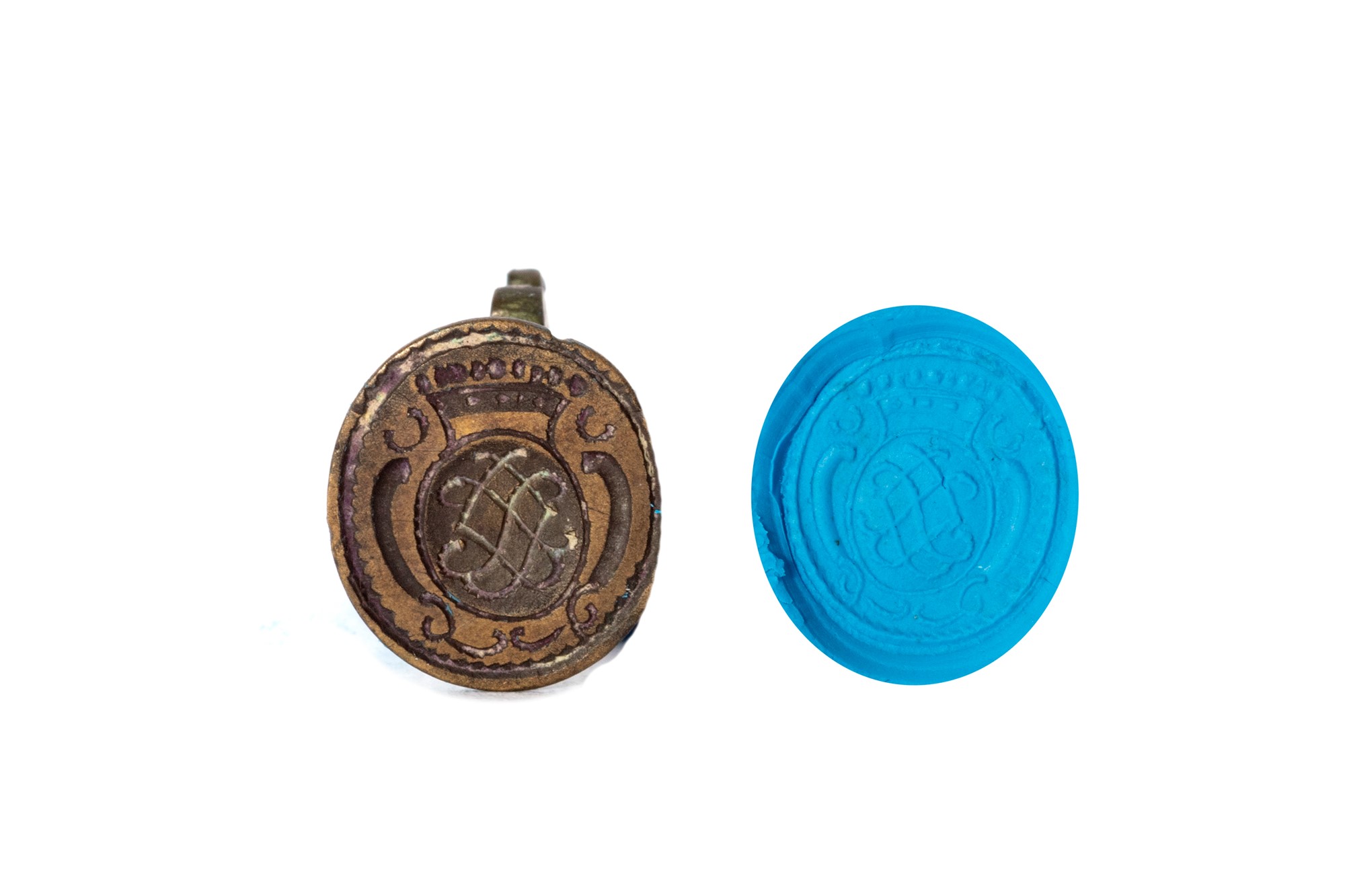 altezza totale cm 3,6 (il più grande ) e cm 1,8 (il più piccolo); cm 2 x 1,8 (il sigillo più grande) e cm 1,7 x 1,6 (il sigillo più piccolo)