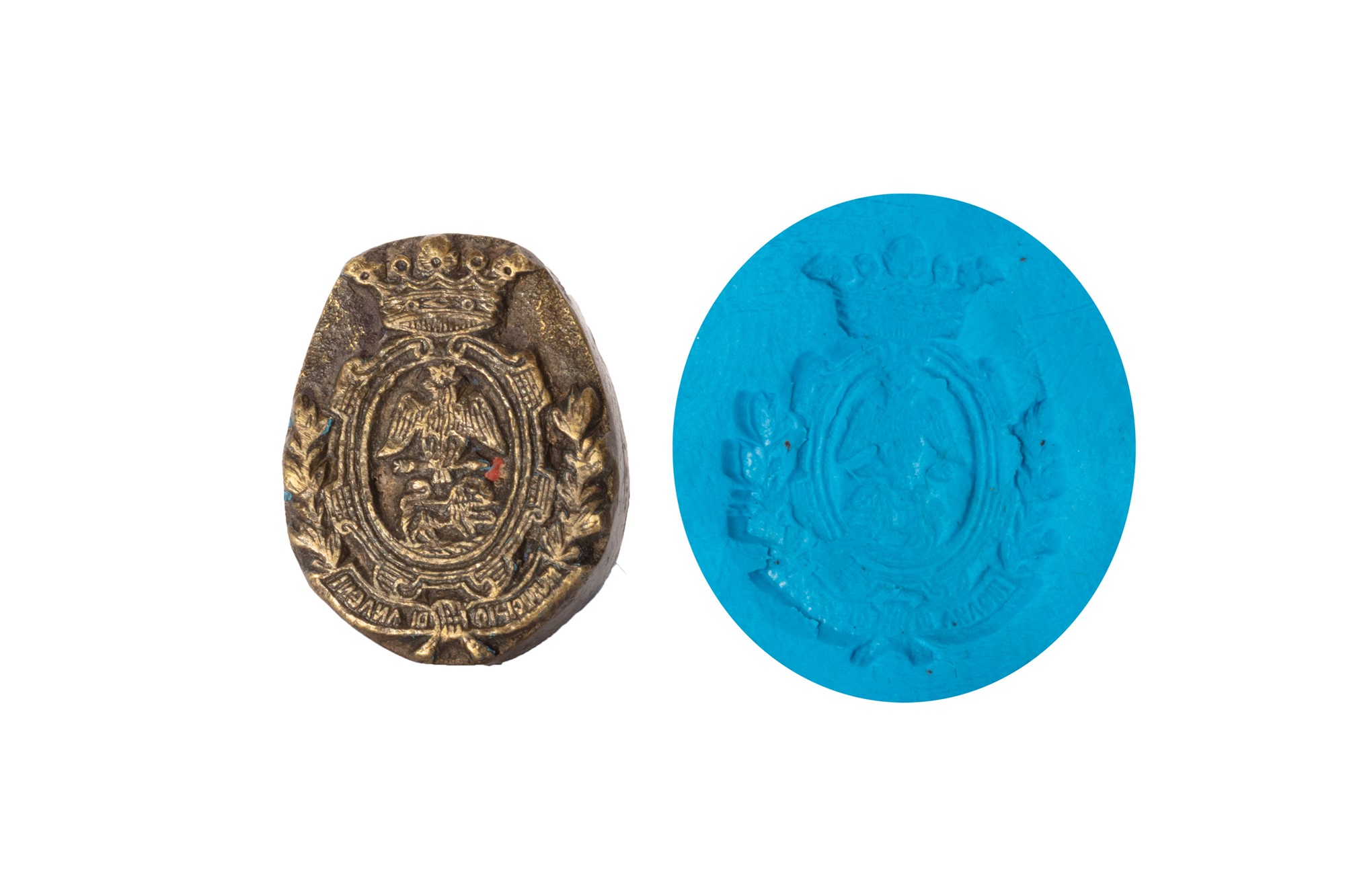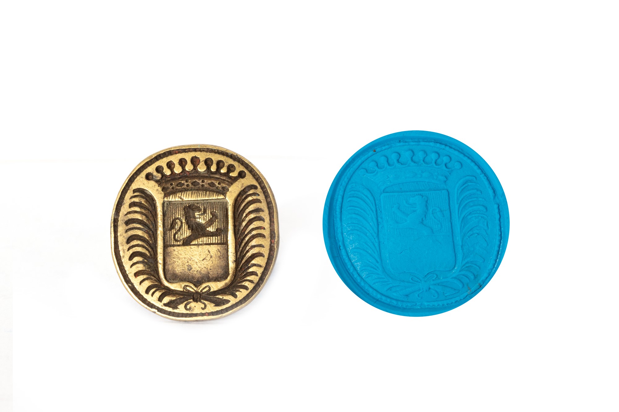 Lot 637 | Lotto composto da quattro antichi sigilli, di cui tre in bronzo e uno in argento e ferro, con stemmi nobiliari