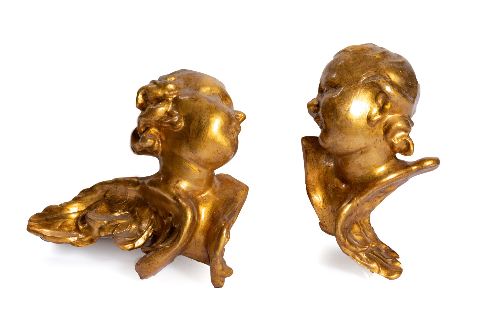 Due teste di cherubini in papier-mâché, secoli XVIII - XIX
