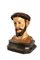 Antica scultura in legno laccato raffigurante testa di San Francesco d'Assisi