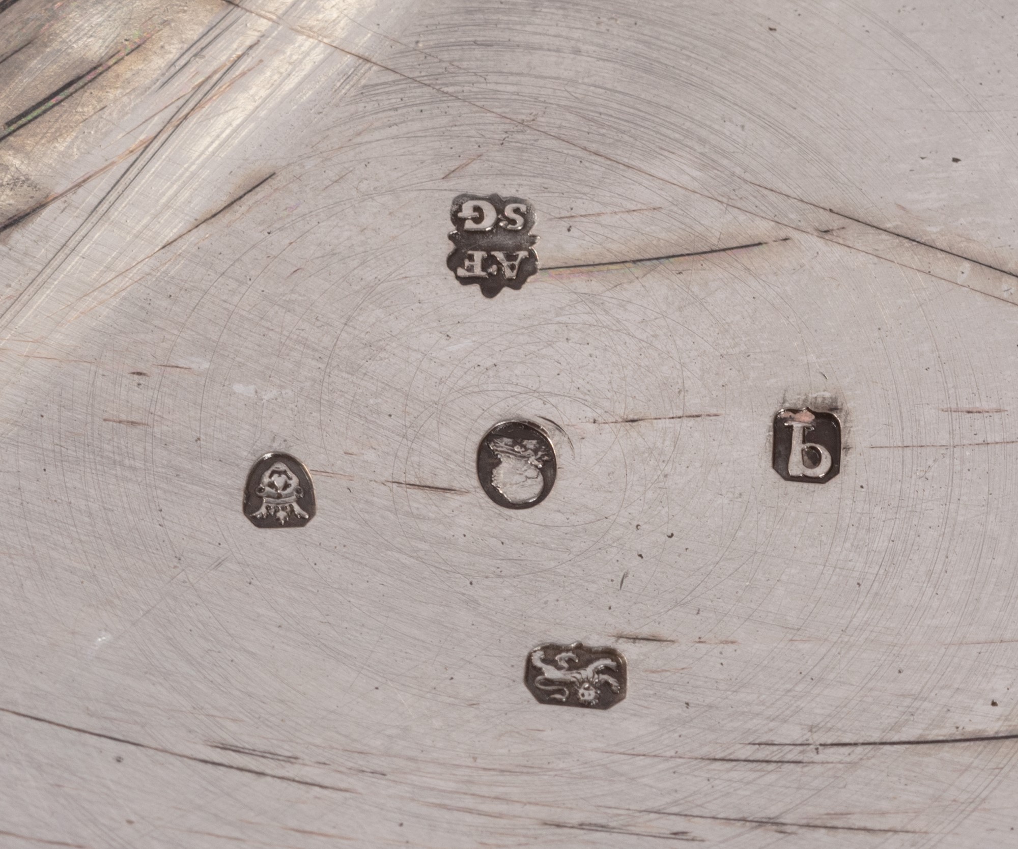 la legumiera con bollo dell'argentiere GW, 1775; il supporto con la spiritiera con bollo dell'argentiere AFSG ,1791