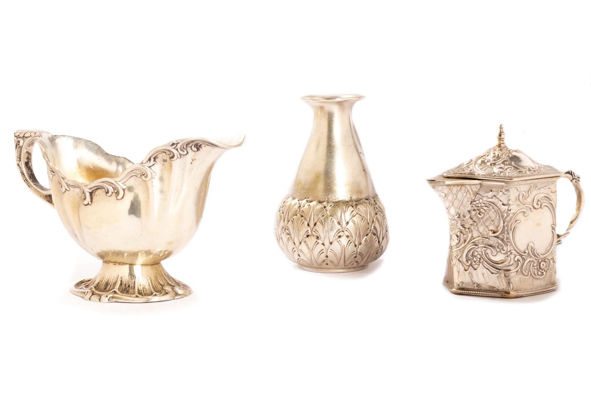 Lotto composto da tre suppellettili in argento, secoli XIX - XX