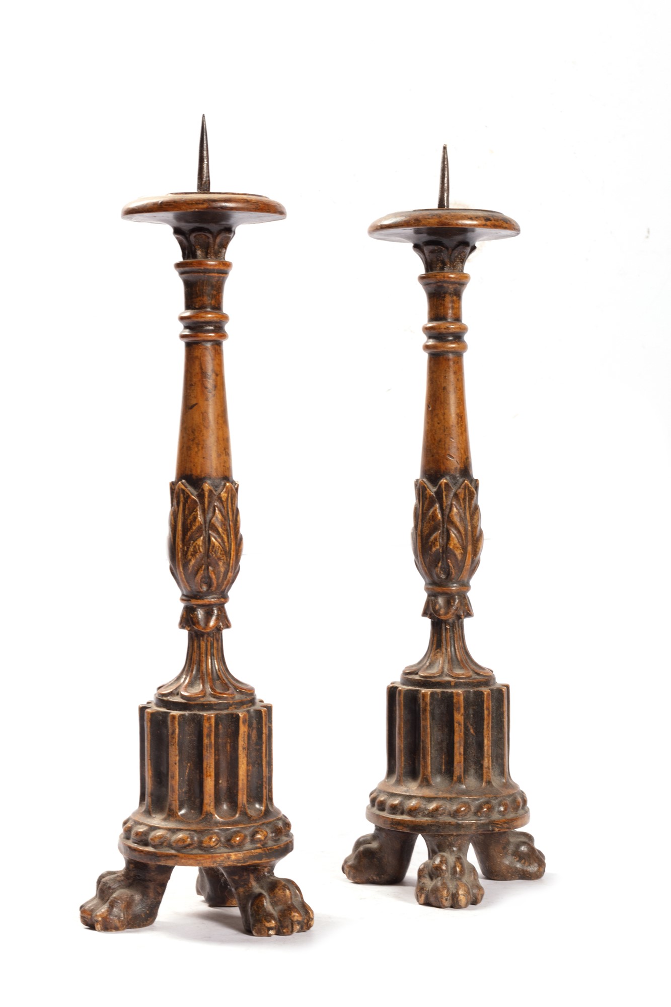 Lot 725 | Coppia di candelieri in legno, secolo XX