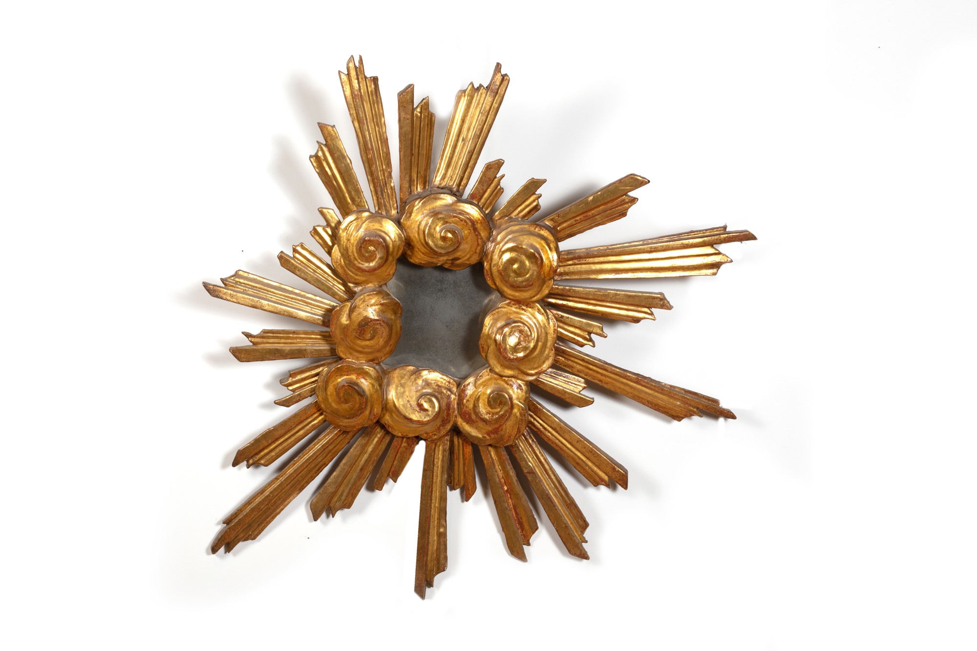 Specchiera in legno dorato con raggi e nuvole, secolo XVII