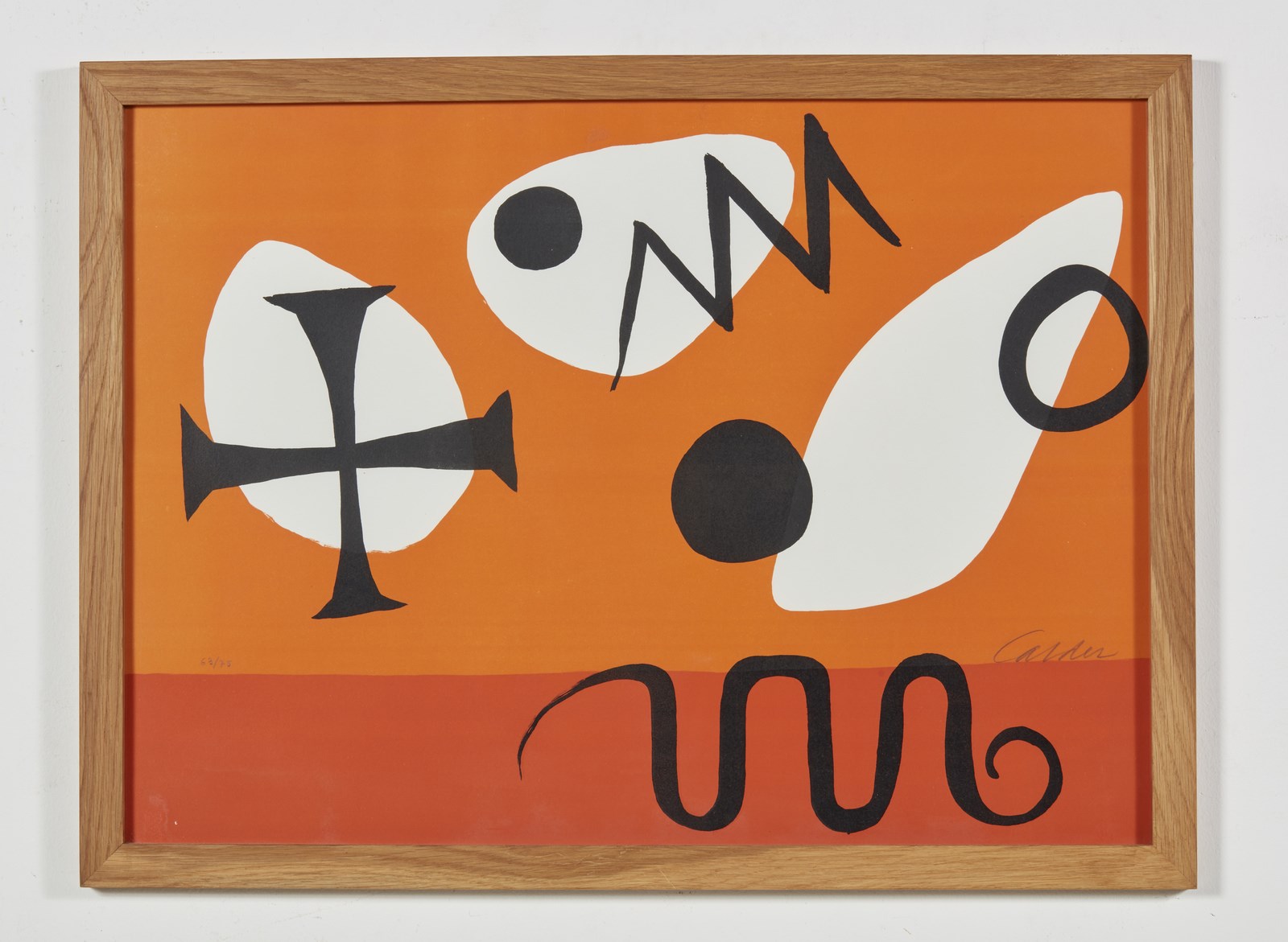 CALDER ALEXANDER (1898 - 1976) Jaune d'oeuf. 1969. Litografia. Cm 74,00 x 53,00. 63/75. Tiratura e firma in basso a matita. Editore: Maeght Éditeur, Paris. Stampatore: Arte Adrien Maeght, Paris. Edizione totale: 75 esemplari firmati e numerati. Sitografia: https://calder.org/works/print/jaune-doeuf-1969/ . Cornice presente