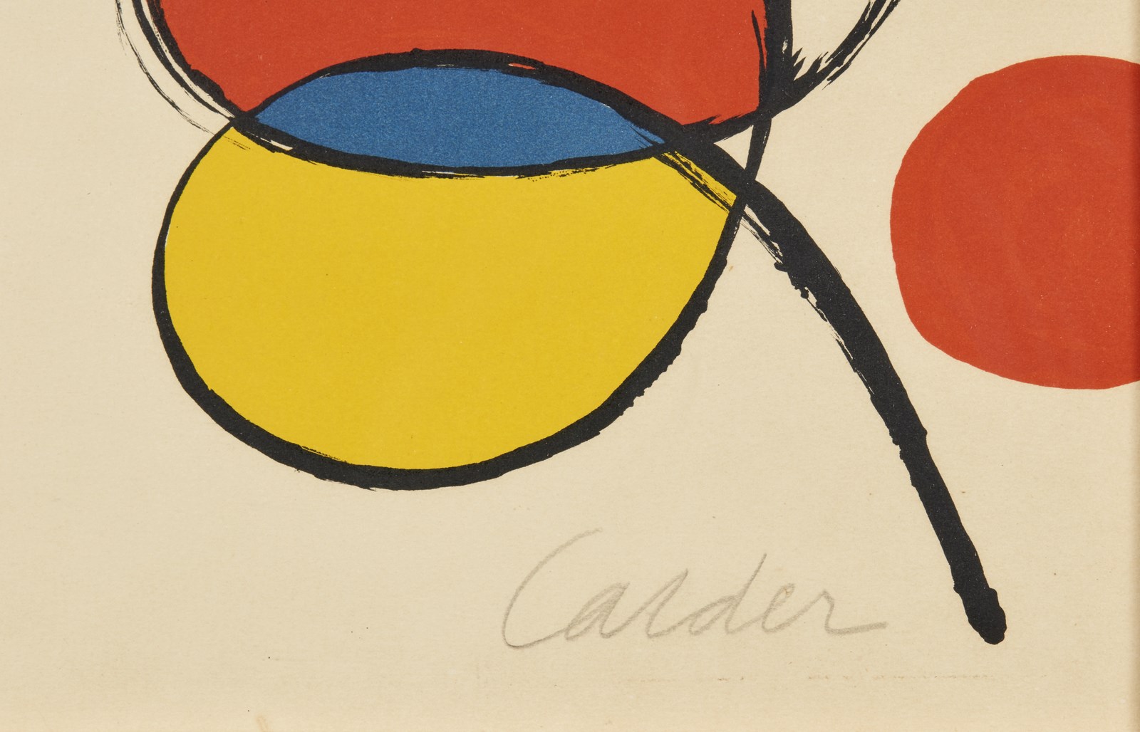 CALDER ALEXANDER (1898 - 1976) L'Espoir du Volubius. 1973. Litografia. Cm 70,00 x 50,00. 65/100. Tiratura e firma in basso a matita. Edizione totale: 100 esemplari firmati e numerati da 1/100 a 100/100; L esemplari numerati da I/L a L/L + p.d.a. Cornice presente