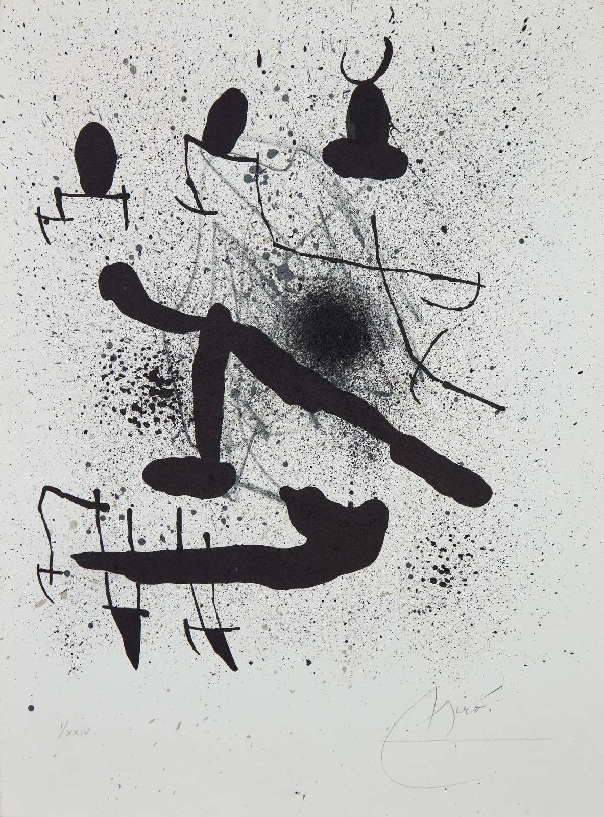 MIRO' JOAN (1893 - 1983) Libertà di Libertà. 1971. Litografia. Cm 35,00 x 47,00. I/XXIV. Tiratura e firma in basso a matita. Grafica proveniente dal volume Poesie di Alain Jouffroy . Edizione totale: XXIV Esemplari su carta Arches numerati da I a XXIV + 125 esemplari numerati da 1 a 125 su carta Arches. Editore: Le Soleil noir, Parigi. Stampatore: Arte Adrien Maeght, Parigi