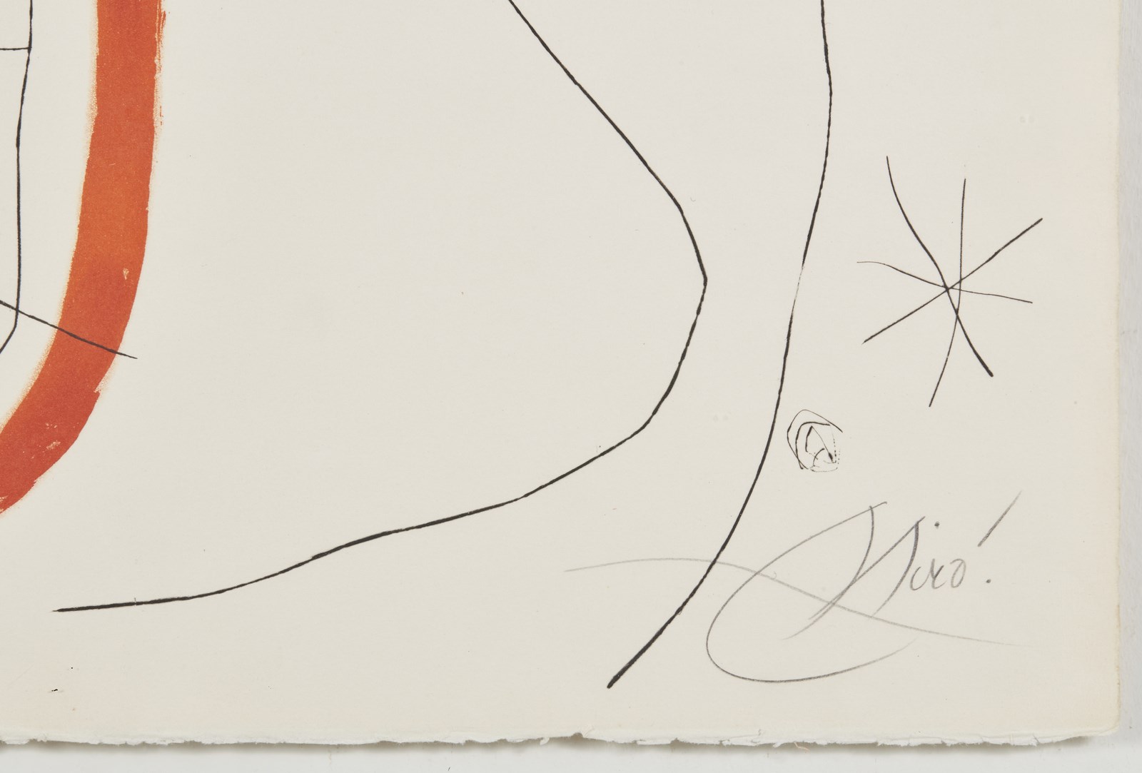 . 1974. Acquatinta e puntasecca. Cm 50,50 x 32,50. H.c. Tiratura e firma in basso a matita. Filigrana Arches France. Grafica proveniente dal volume L'Issue Dérobée, Jacques Dupin, Editore Maeght, Parigi, 1974. Stampatore: Arte Adrien Maeght, Paris. Pubblicazione: Dupin, Jacques. Miró Engraver, vol. III 1973 - 1975, n.711. Cornice presente