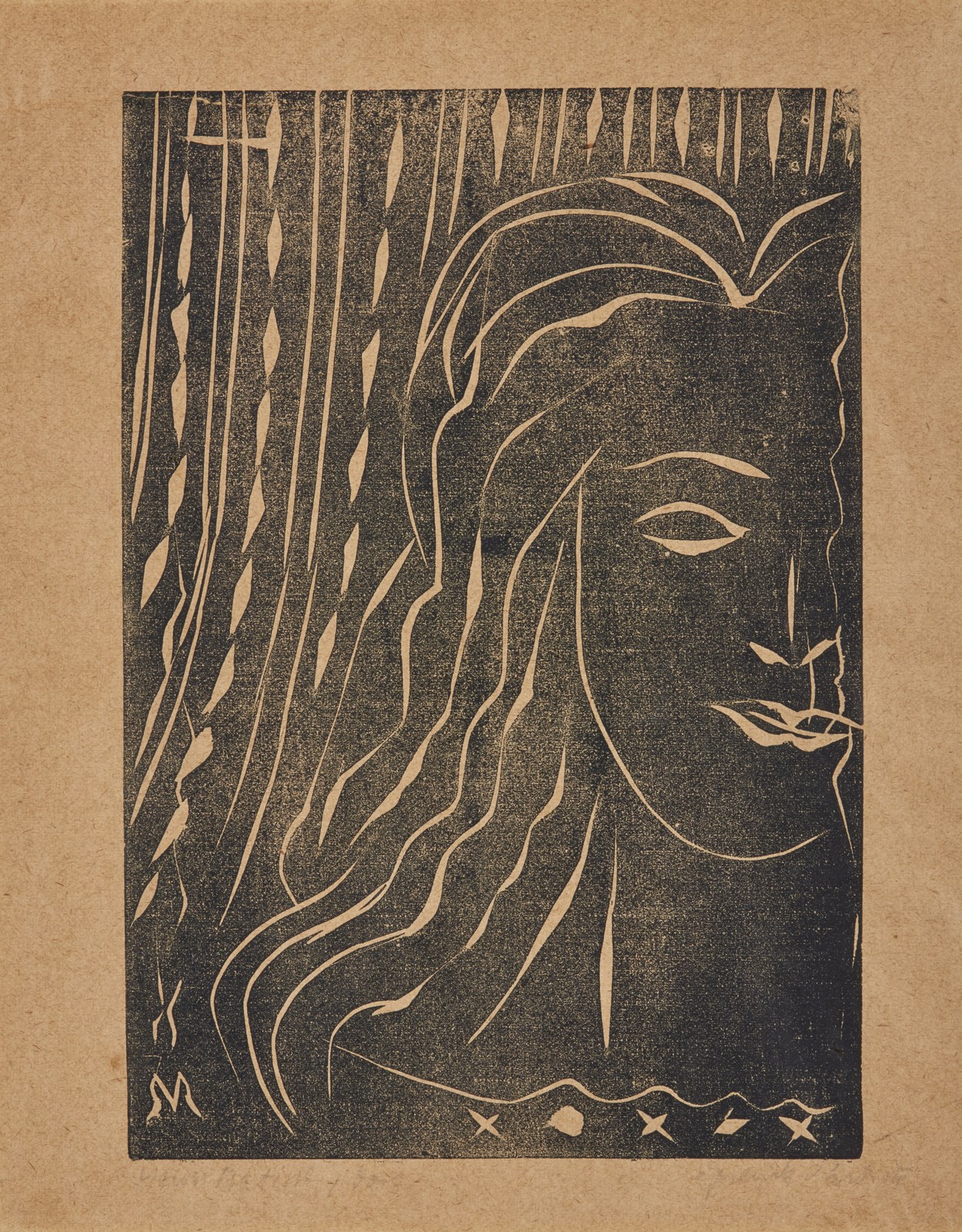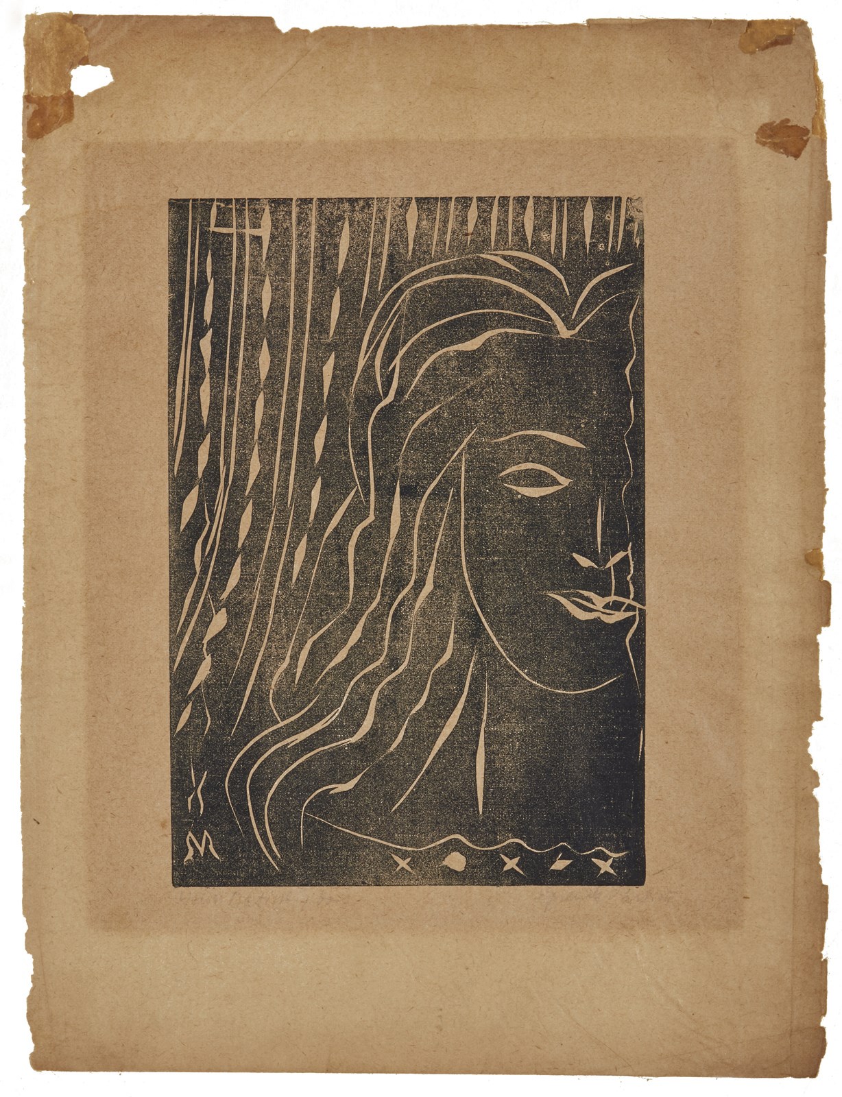 MATISSE HENRI (1869 - 1954) Jeune femme au visage coupé. 1938. Linocut. Cm 20,00 x 27,00. P.d.a. Tiratura e firma in basso a matita (molto scolorite). Dimensione lastra: 17.5x12 cm. Edizione totale: 5 prove + 5 prove d'artista +25 esemplari numerati e firmati dall'artista. Pubblicazione: Duthuit-Matisse, Marguerite – Henri Matisse: Catalogue raisonne de l’oeuvre grave Tome II, Paris, tav.2; Claude Duthuit – Catalogue raisonne des ouvrages illustres, 1983.