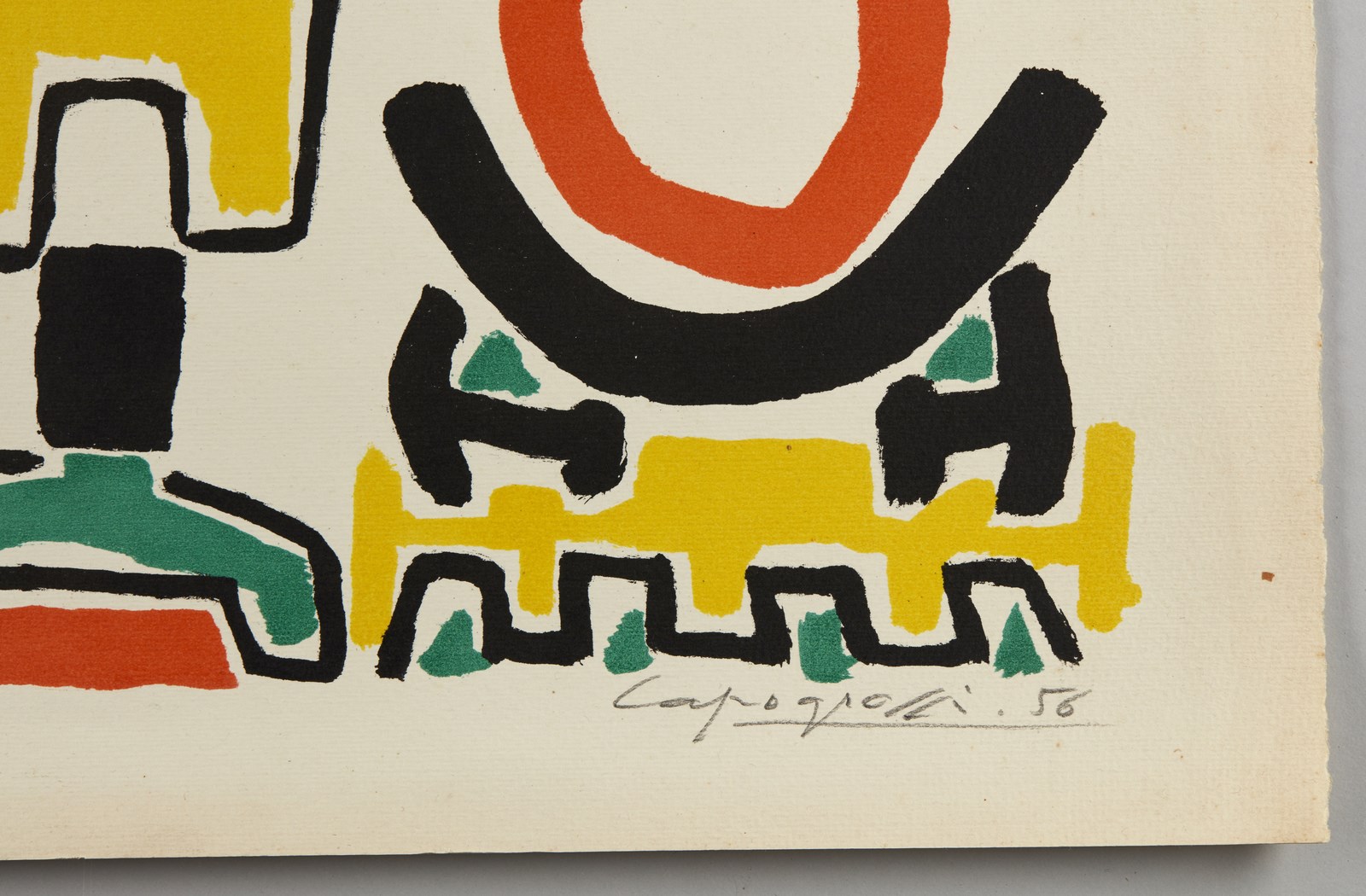 CAPOGROSSI GIUSEPPE (1900 - 1972) Composizione. 1956. Litografia. Cm 70,00 x 50,00. 72/100. Tiratura, firma e anno in basso a matita. Lievi difetti.