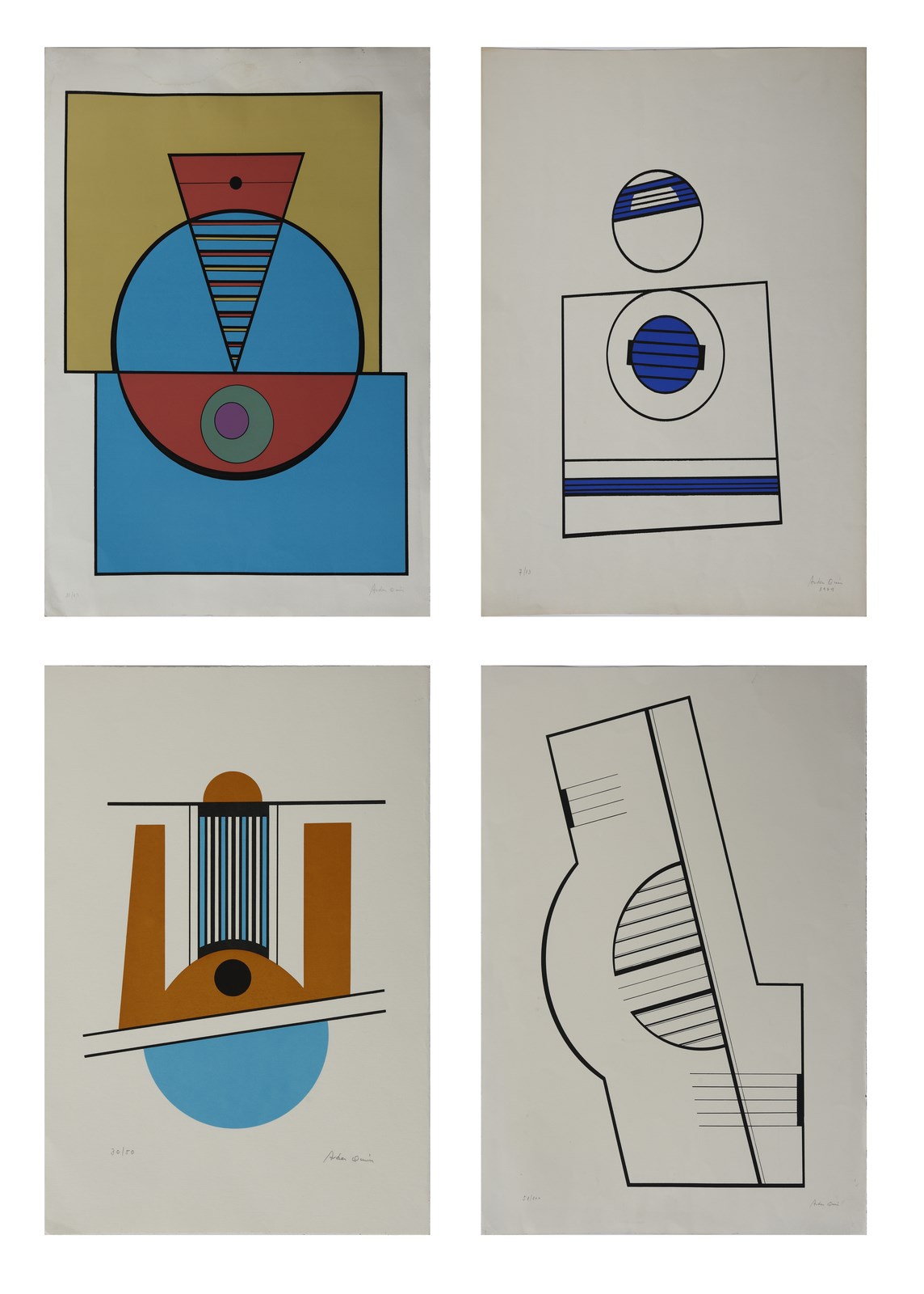 ARDEN-QUIN CARMELO (1913 - 2010) Lotto composto da n.4 fogli. Senza titolo. Serigrafia. . 1. 30/50. Tiratura e firma a matita in basso. 56x38 cm.